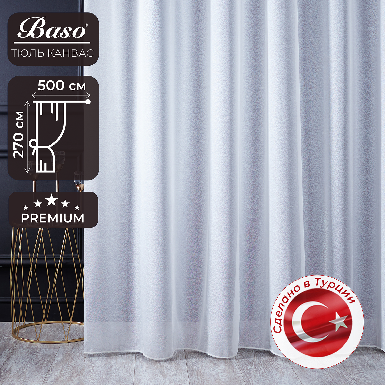 Тюль канвас Baso на шторной ленте / для интерьера гостиной, спальни, кухни, дом, дача / 270х500 см., 1 шт, белый, Турция 3 517 ₽