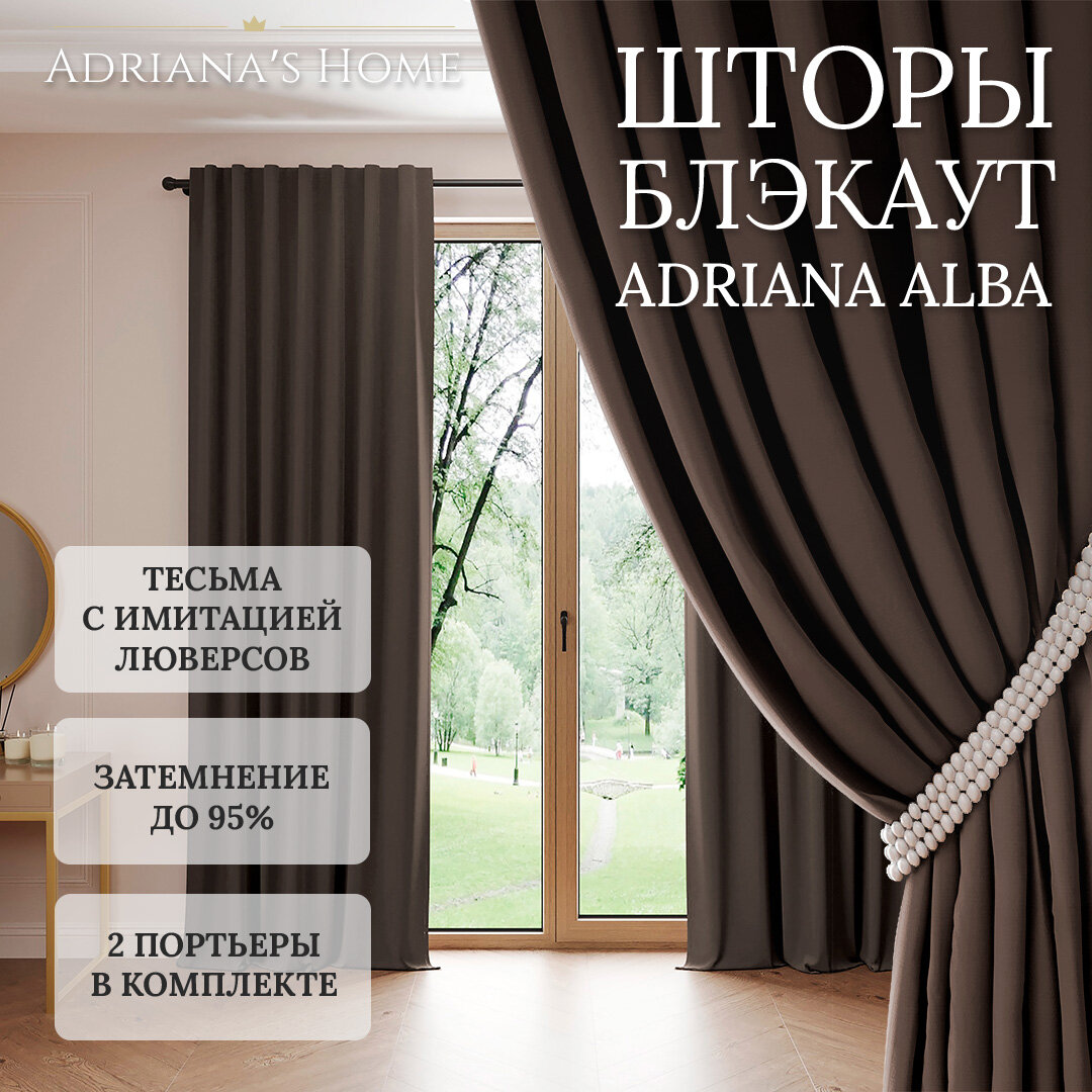 Шторы Adriana Alba, блэкаут, венге, комплект из 2 штор, высота 265 см, ширина 300 см, люверсная лента 8 947 ₽