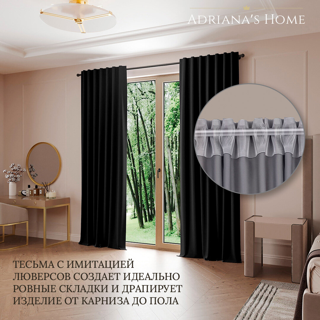 Отзывы на Шторы Adriana Alba, блэкаут, черный, комплект из 2 штор, высота 250 см, ширина 300 см, люверсная лента