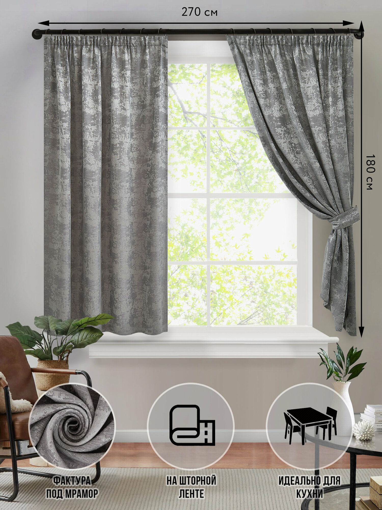 Шторы короткие SvAlMi мрамор серый для кухни спальни детской информация: