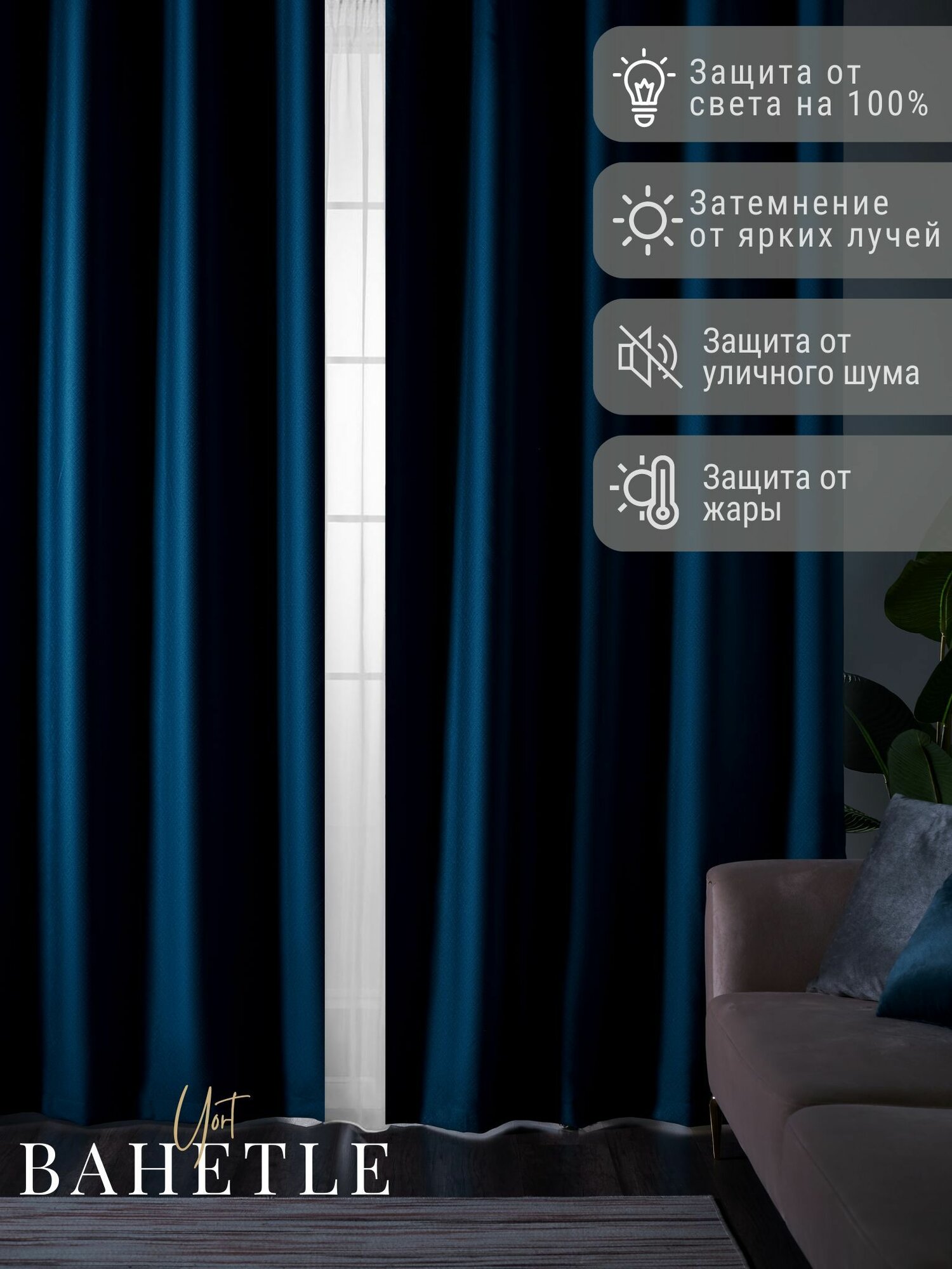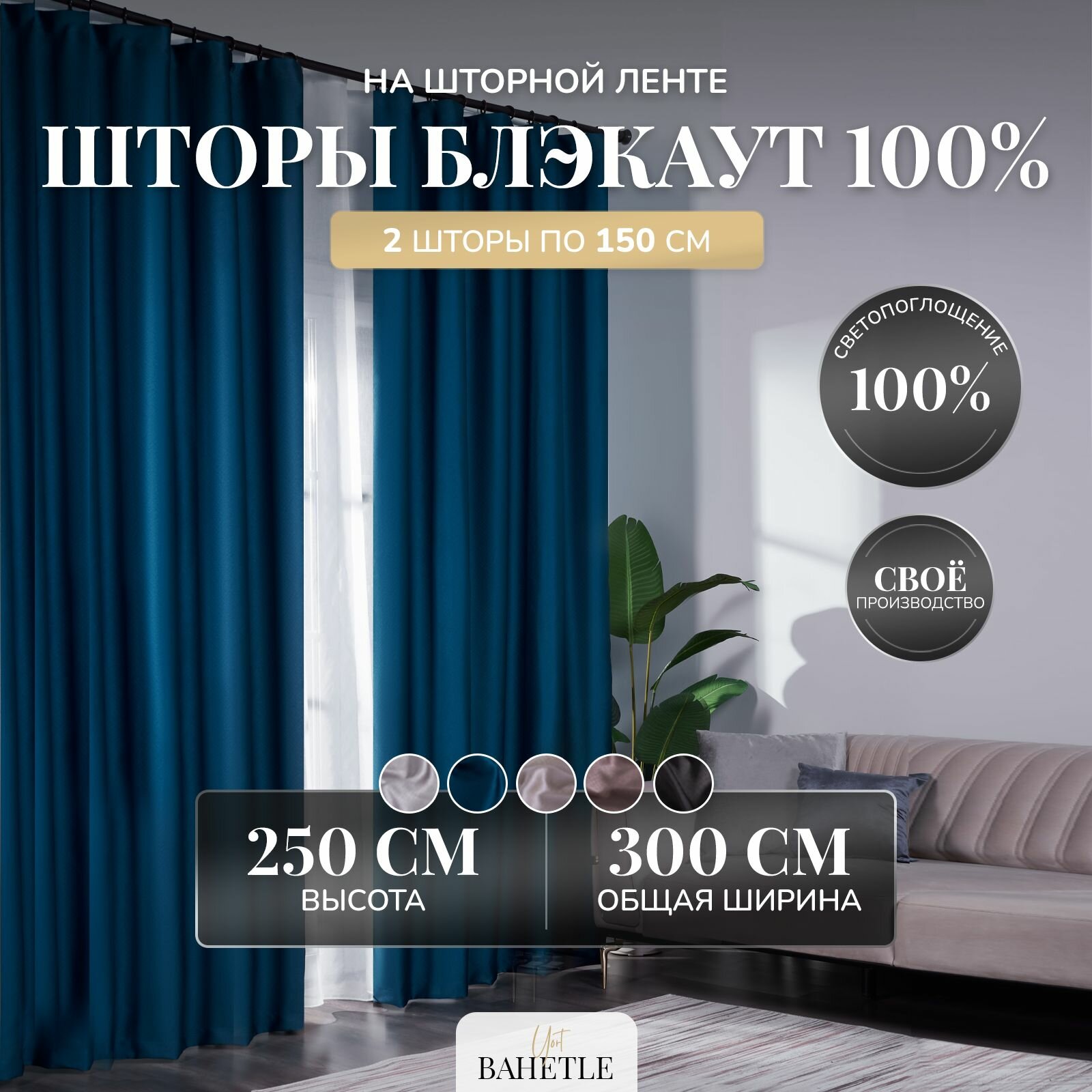 Отзывы на Комплект штор Bahetle Блэкаут 100% затемнение от солнца 150х250 см 2 шт, однотонные плотные портьеры для спальни, детской, гостиной, зала лазурные