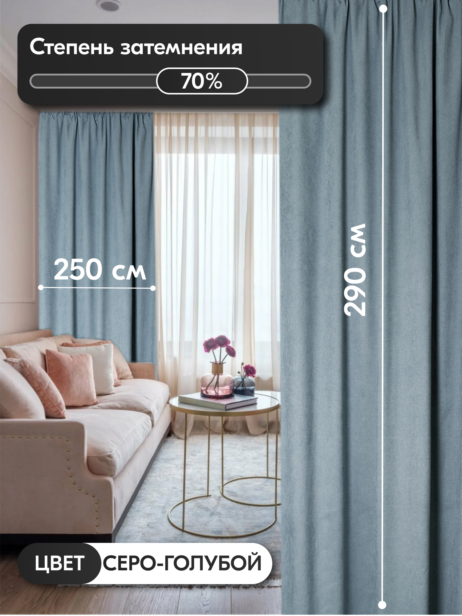 Отзывы на Комплект матовых портьерных штор 500x290 см, 2 штуки, канвас, цвет: серо-голубой