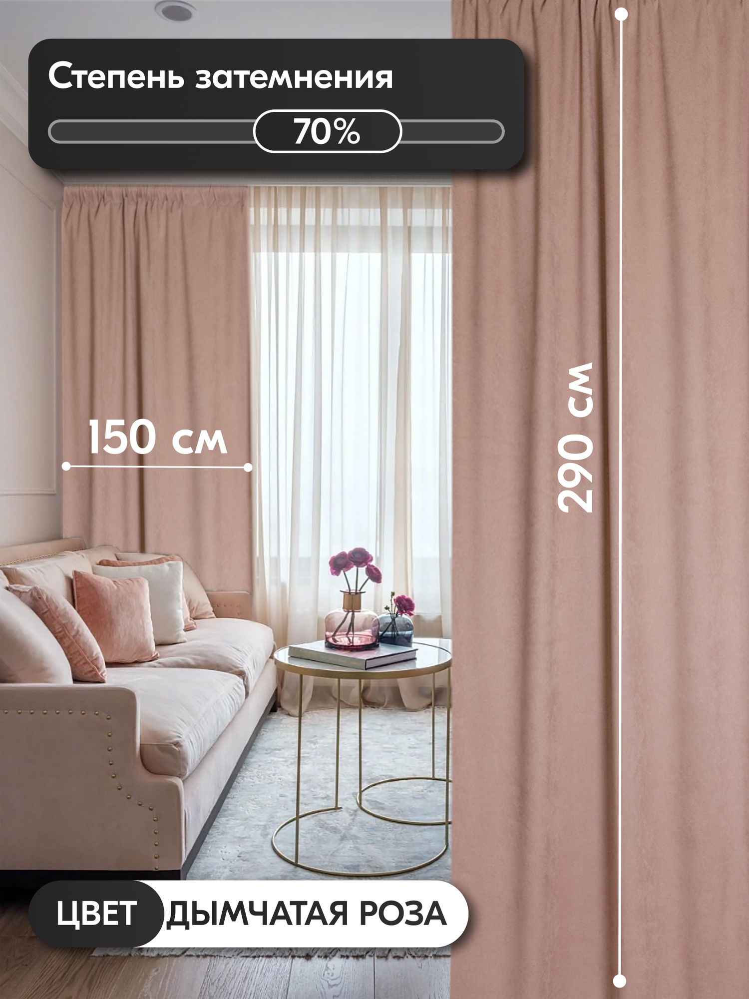 Комплект матовых портьерных штор 300x290 см, 2 штуки, канвас, цвет: дымчатая роза информация: