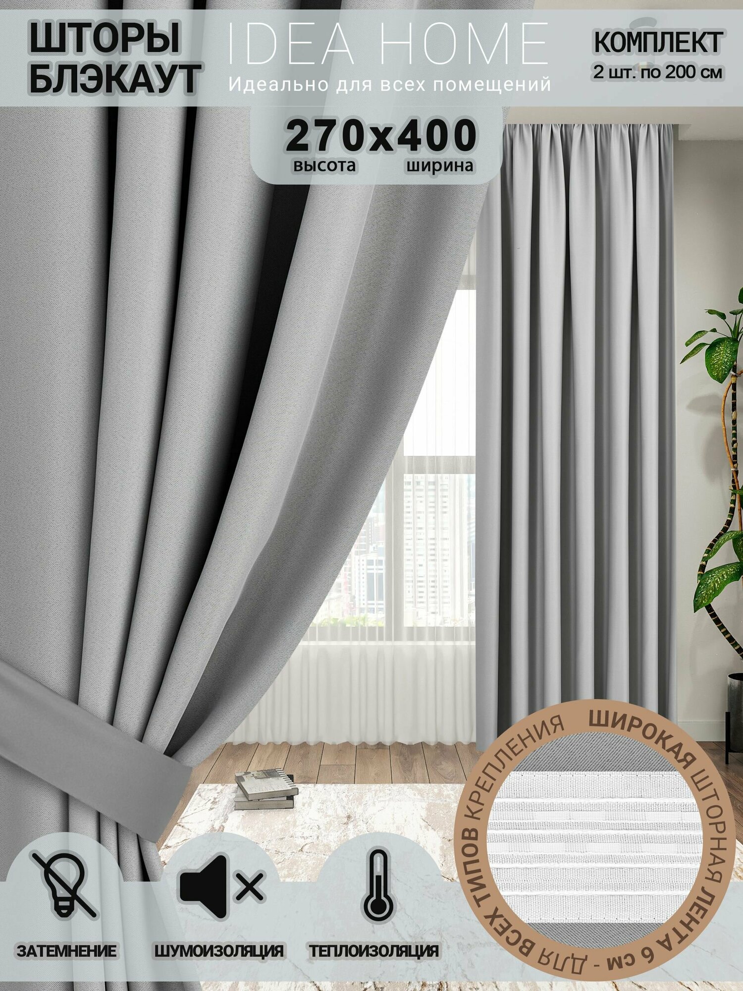 Комплект штор из 2 шт по 200 см блэкаут/ blackout IDEA HOME светозащитные для комнаты , кухни , спальни , гостиной и дачи 400*270 см , однотонные , светло-серый информация: