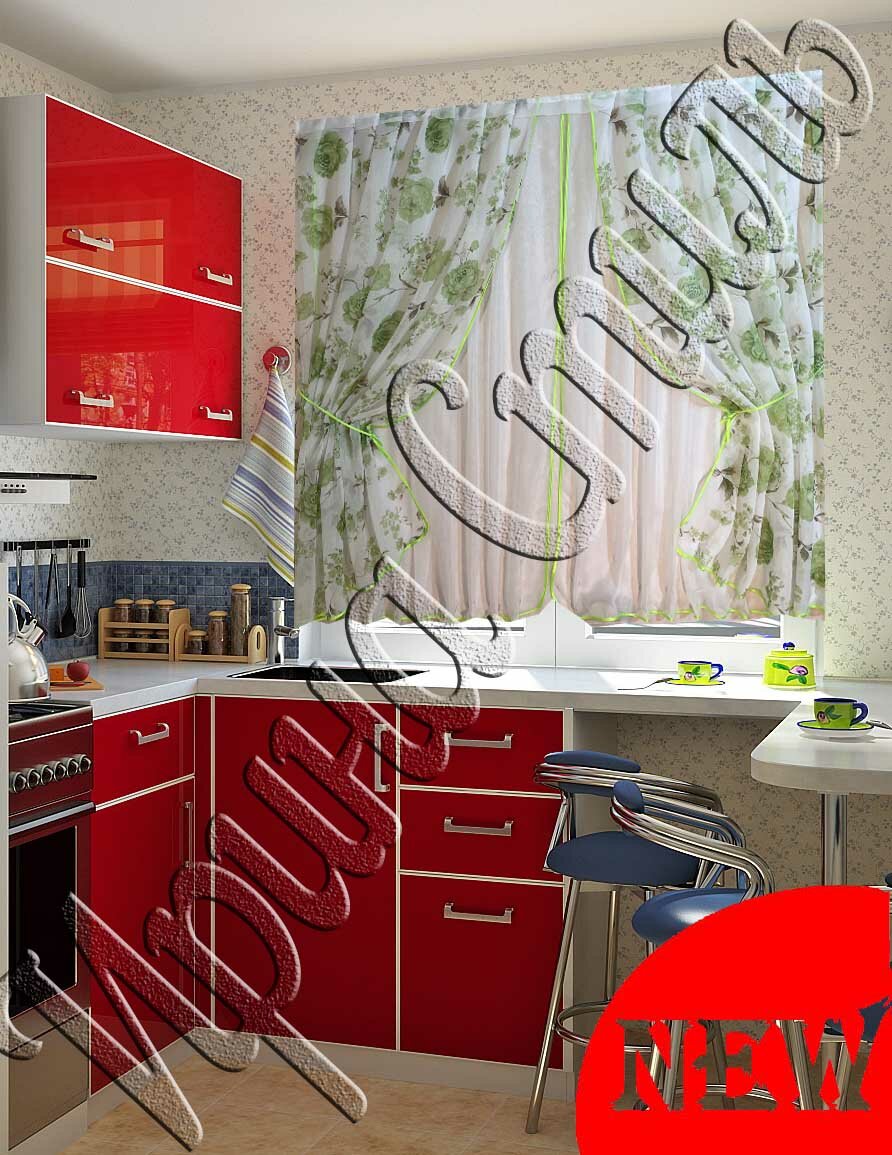 Тюль короткий для кухни