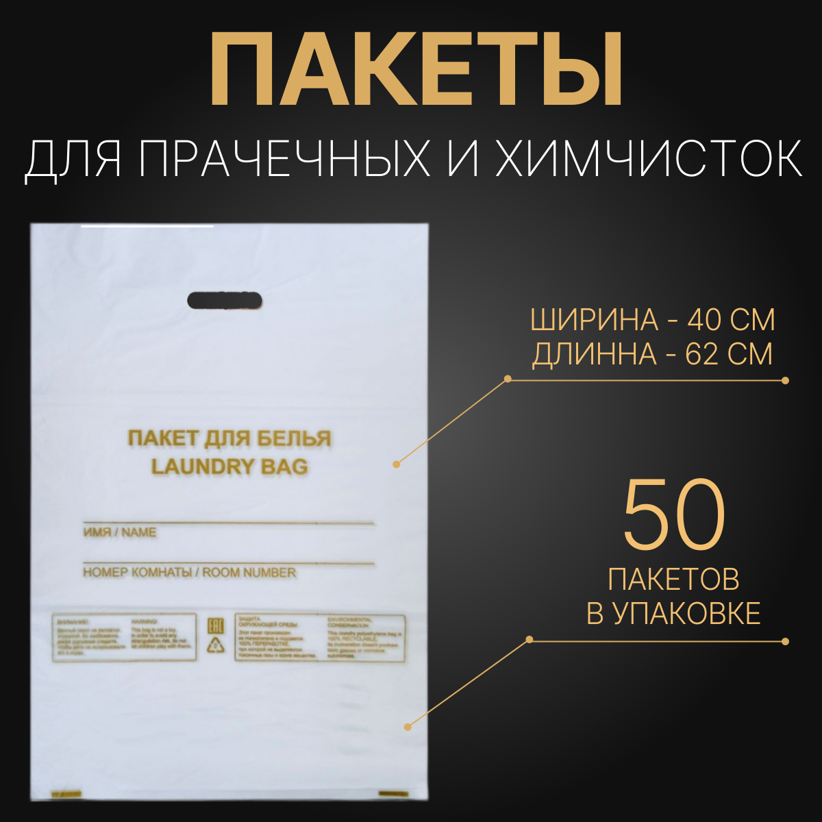 Пакет для белья Laundry bag с вырубной ручкой. Для гостиниц, отелей, хостелов и гостевых домов информация: