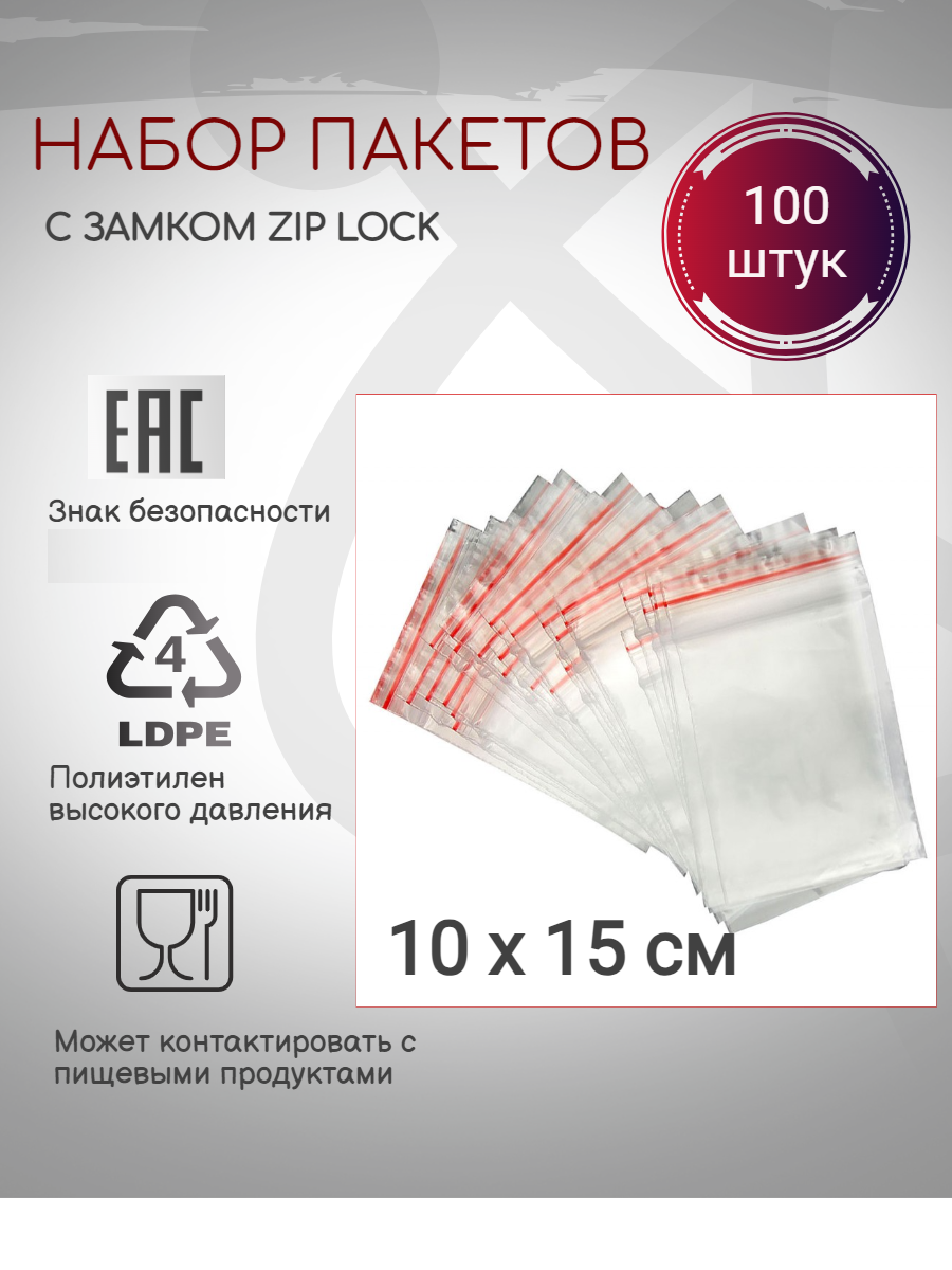 Пакет с Зип замком ( Zip Lock ) 10х15 100шт информация: