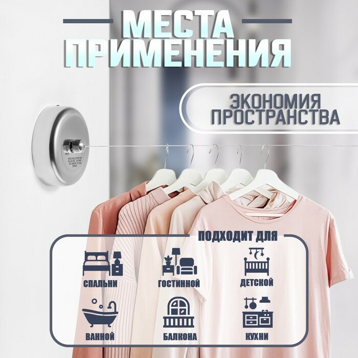 Отзывы на Настенная сушилка для белья тундра, нейлоновый вытяжной трос 2.8 м. нагрузка до 3 кг.