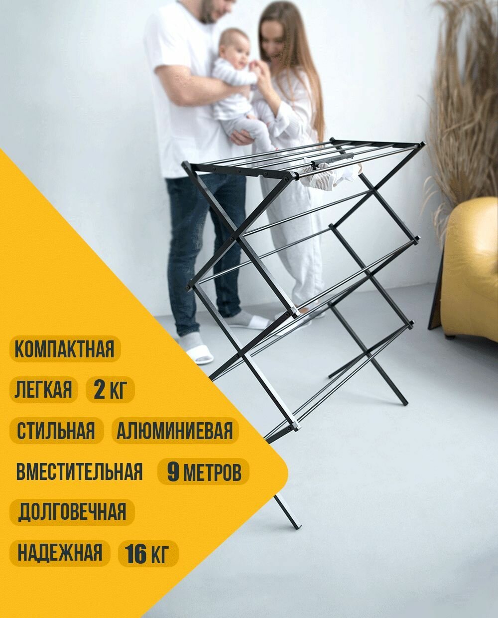 10 цен на Сушилка для белья напольная складная Bilmann, сушилка вертикальная, металлическая, 1000х780х370 мм, с толстыми прутьями, черная