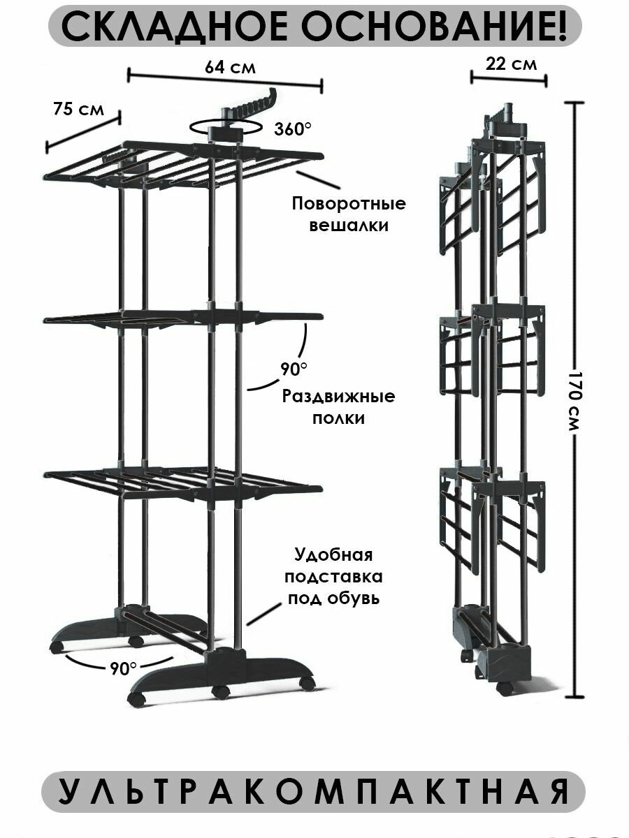 Сушилка для белья напольная раскладная вертикальная раздвижная со складными ножками информация: