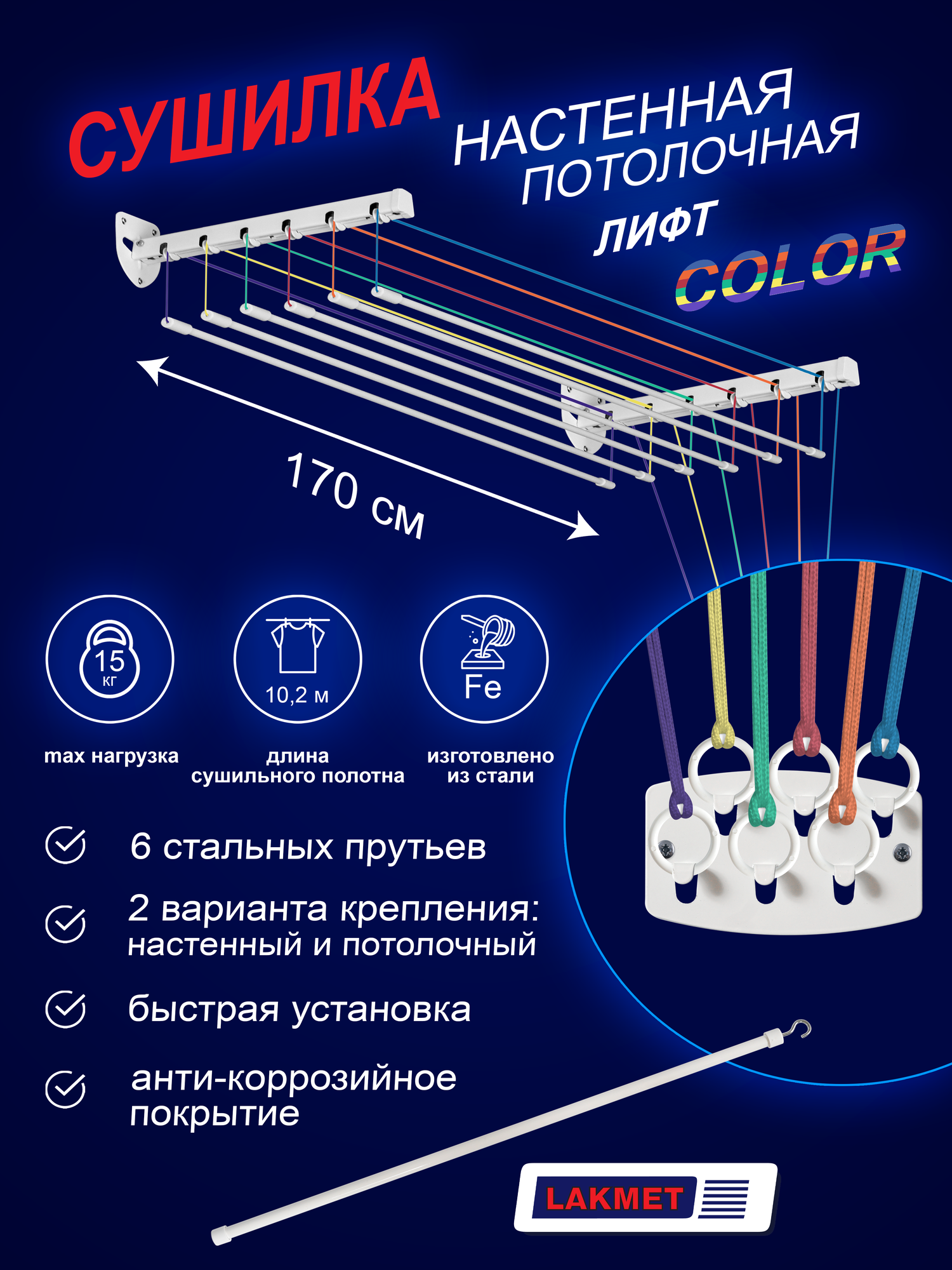 Отзывы на Потолочная/настенная сушилка для белья лифт "Lakmet" 170 см, color.