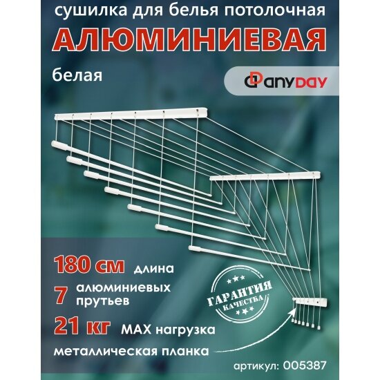 Сушилка потолочная Anyday для белья алюм. 7 пр. 1,8 м, белая 005387 информация: