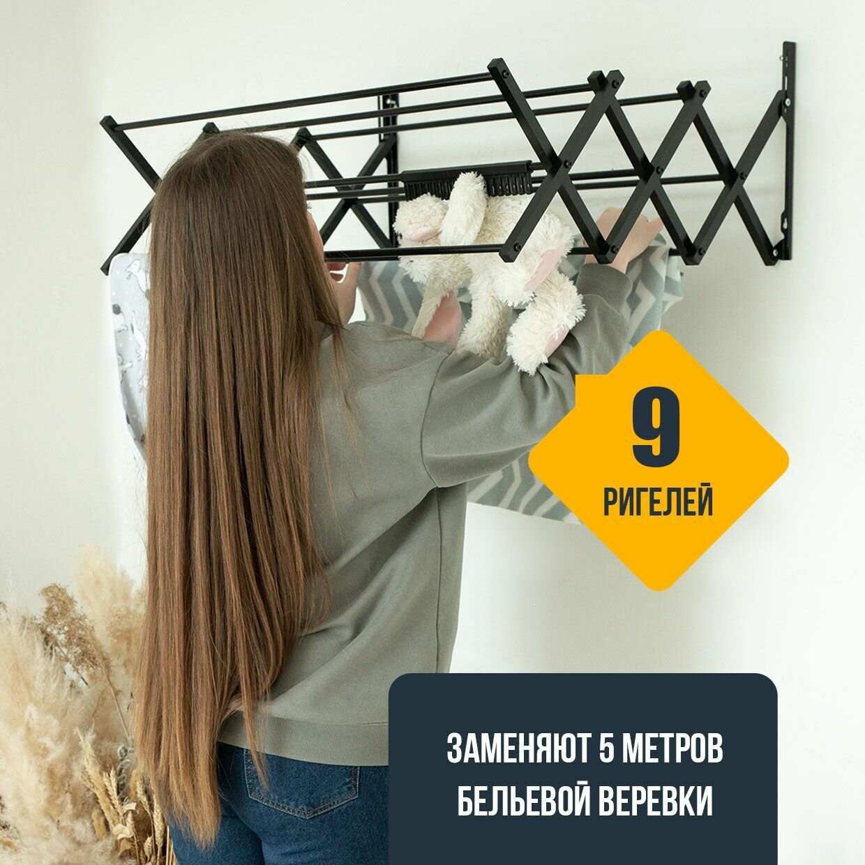 10 цен на Сушилка для белья настенная Bilmann, раздвижная, алюминиевая, на балкон, черная 600х300х600(77) мм