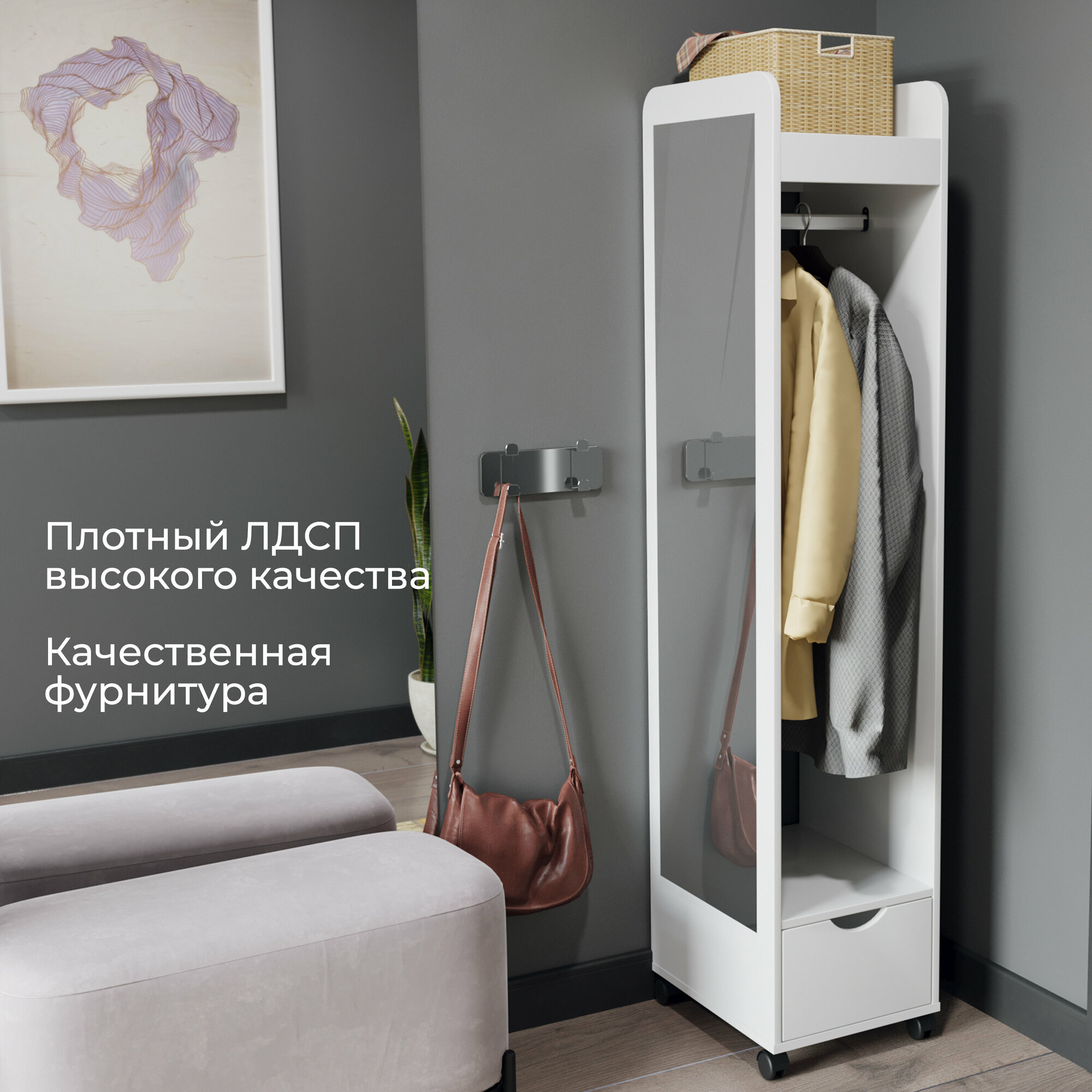Отзывы на Прихожая мебель белая с зеркалом и ящиком (ВхШхГ) 173х36х46 см, Лайт секция