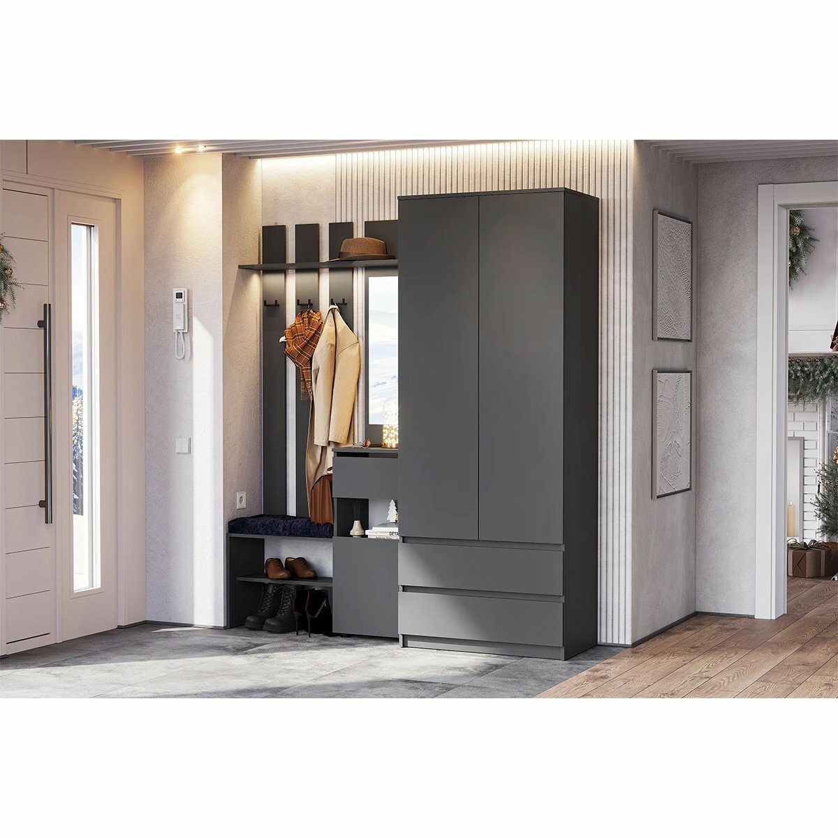 Модульная прихожая "Денвер" - Графит серый информация: