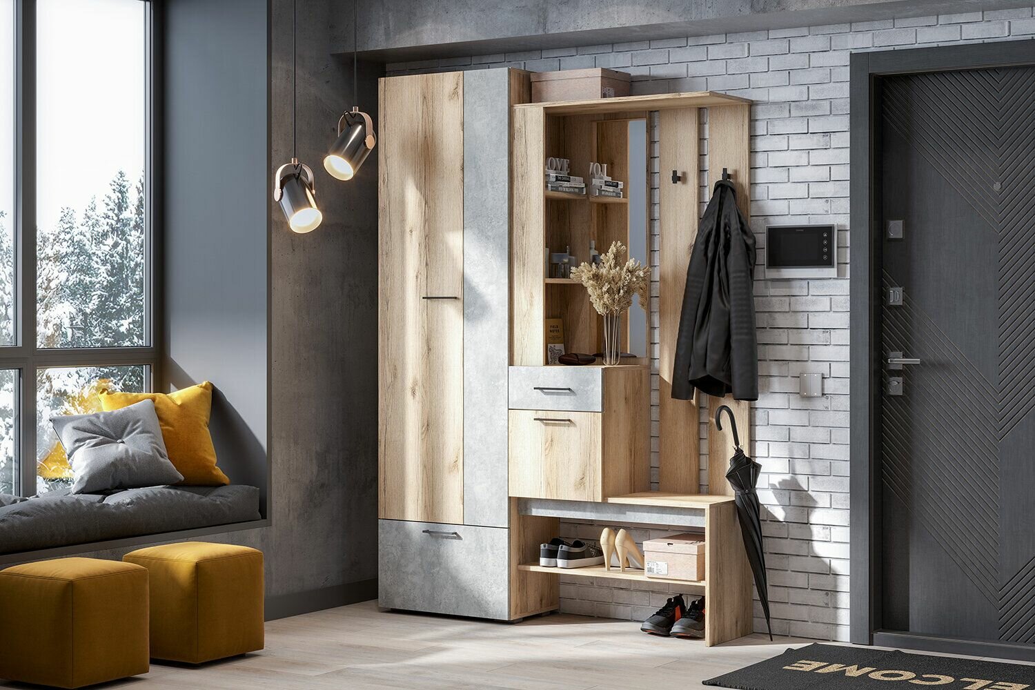 Комплект мебели для прихожей Флэш (comp.5) Браш Графит/Дуб Крафт