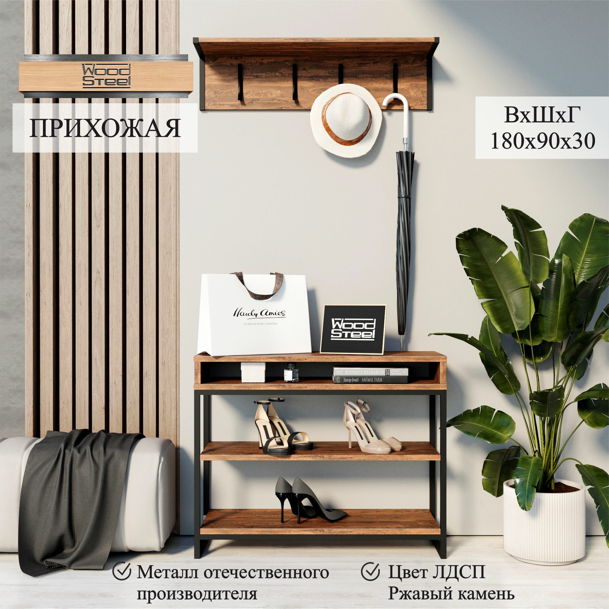 Отзывы на Прихожая в стиле Лофт "Urban" 90x30х180 см. Ржавый камень / Мебель для прихожей, полка для обуви, тумба для обуви, обувница, вешалка для одежды