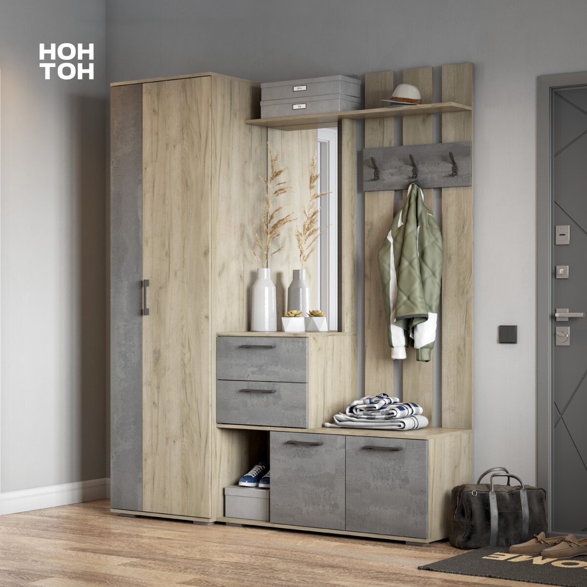 1 шт мс для прихожей Бостон ВШ-1 дуб крафт серый/бетонный камень + 1 шт мс для прихожей Бостон ШК-800 дуб крафт серый/бетонный камень