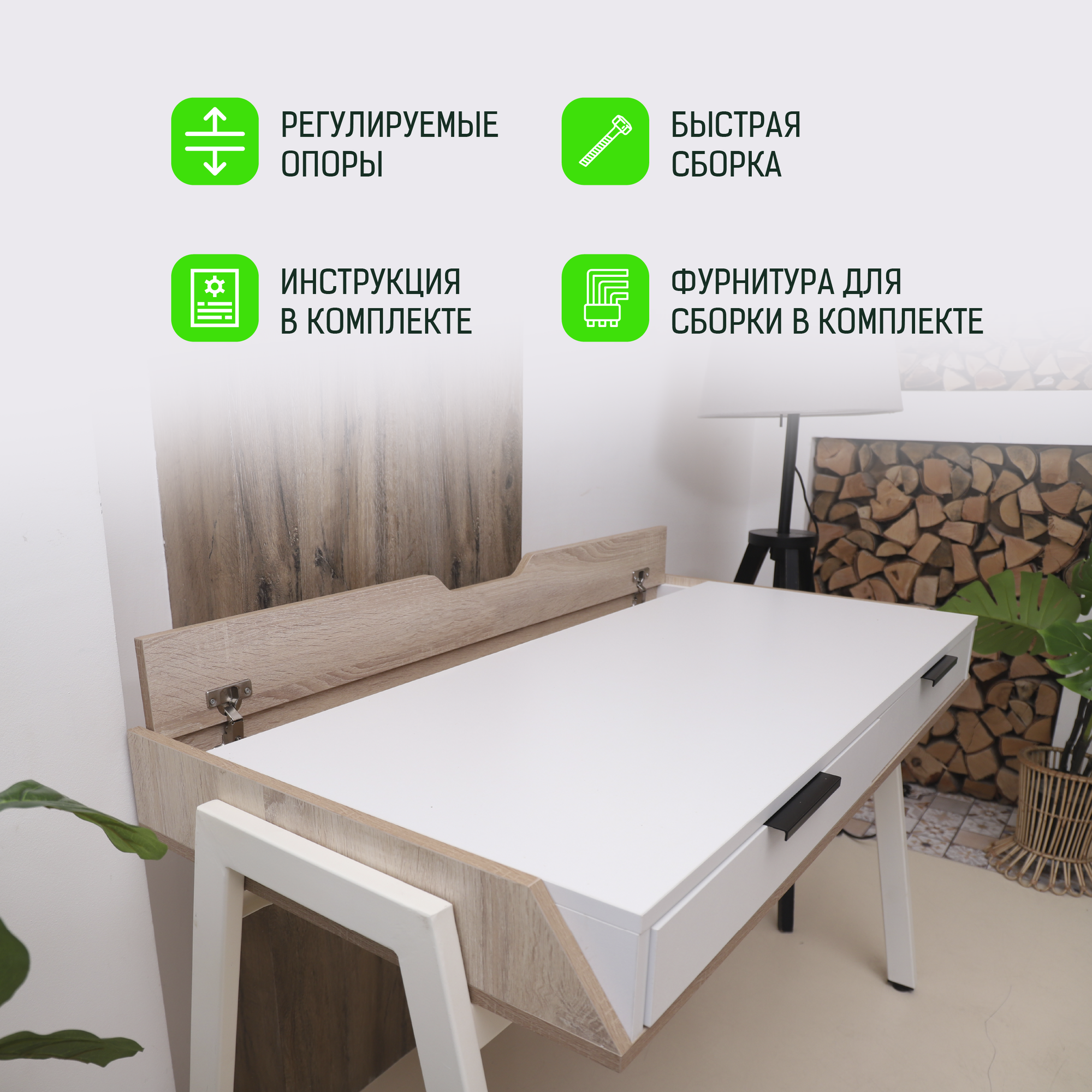 Компьютерный, письменный стол Альфа с ящиками, 106х50.4х76 см, Дуб Крафт золотой / Белый матовый
