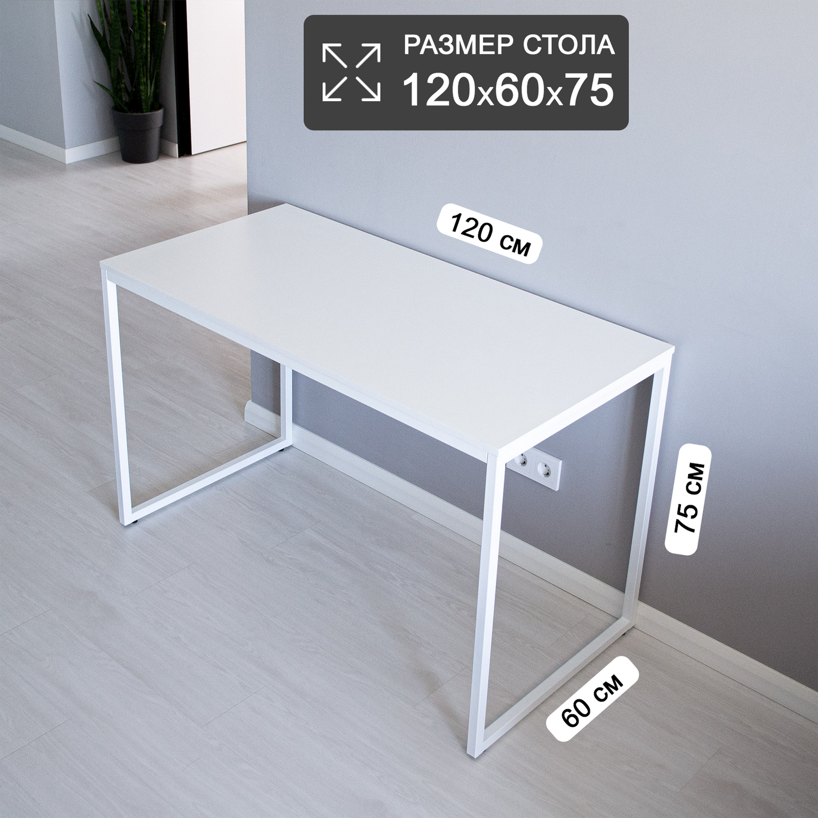 Стол рабочий, кухонный, письменный, компьютерный, обеденный, для кухни, игровой, офисный, лофт, 120х60х75 см, Белый/Белый информация: