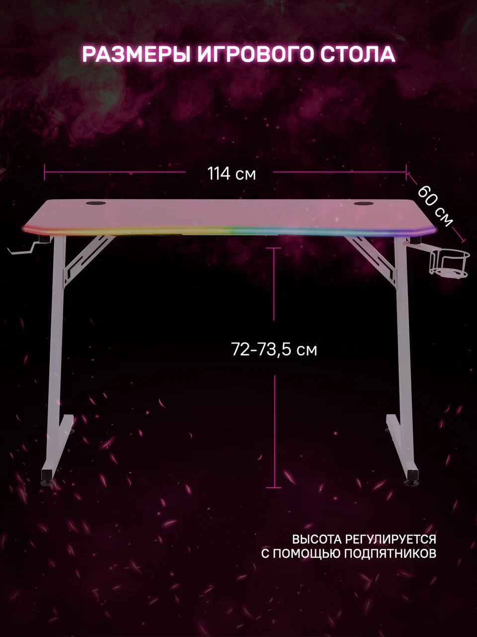 | Дополнительная информация | Регулировка RGB-подсветки обеспечивается пультом дистанционного управления. Наличие подстаканника и крючка для гарнитуры. |