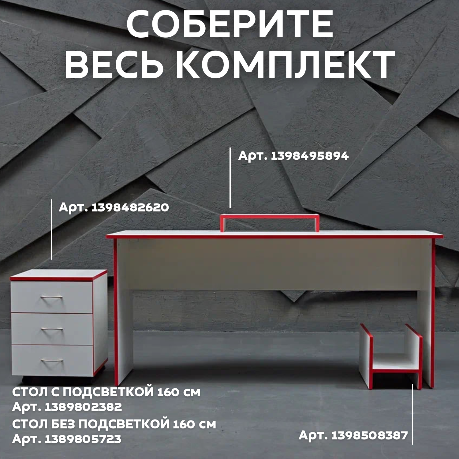 Стол игровой геймерский с RGB подсветкой и пультом стол компьютерный офисный письменный, белый красный 160х60х75 9 311 ₽