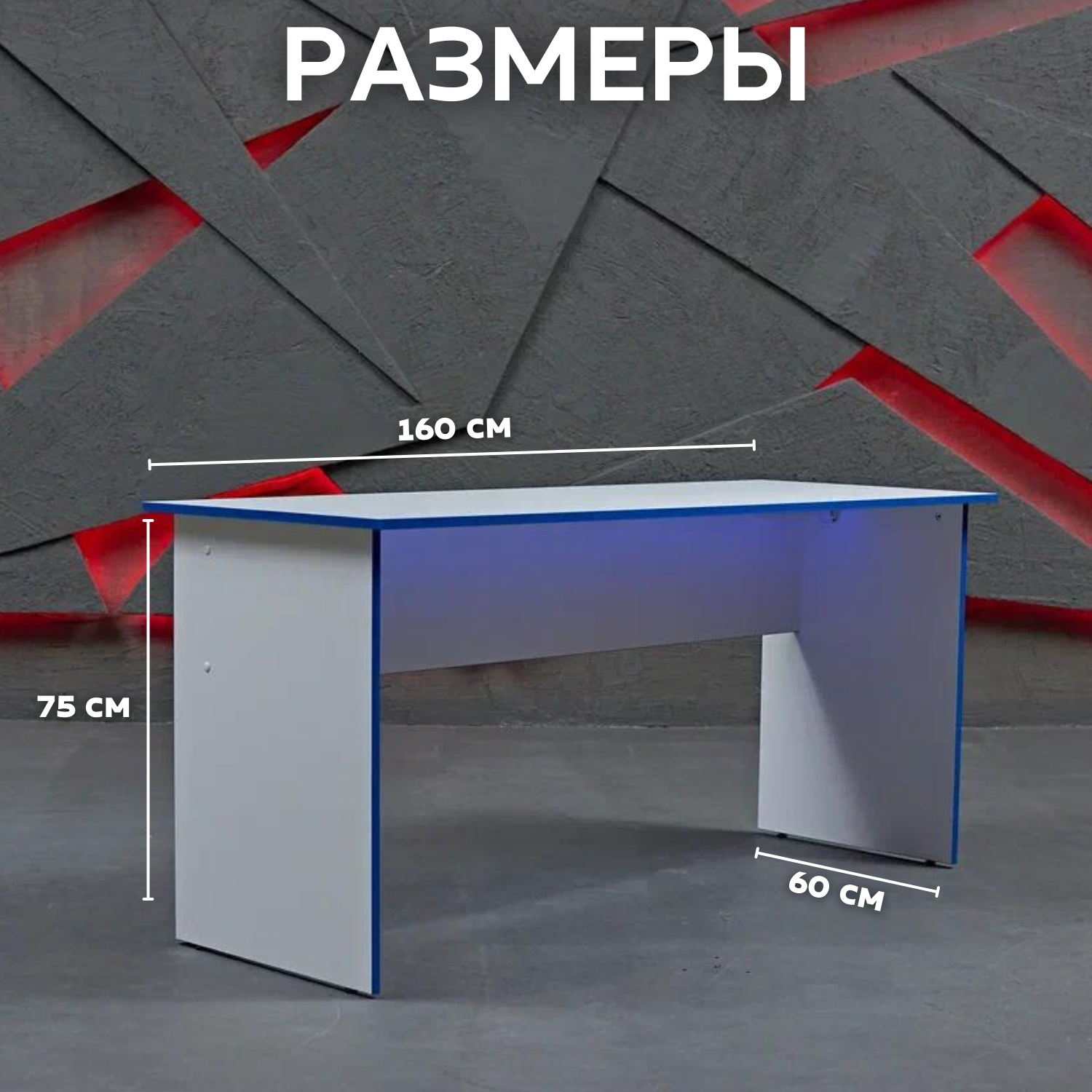 Стол игровой геймерский с RGB подсветкой и пультом стол компьютерный офисный письменный, белый синий 160х60х75 информация: