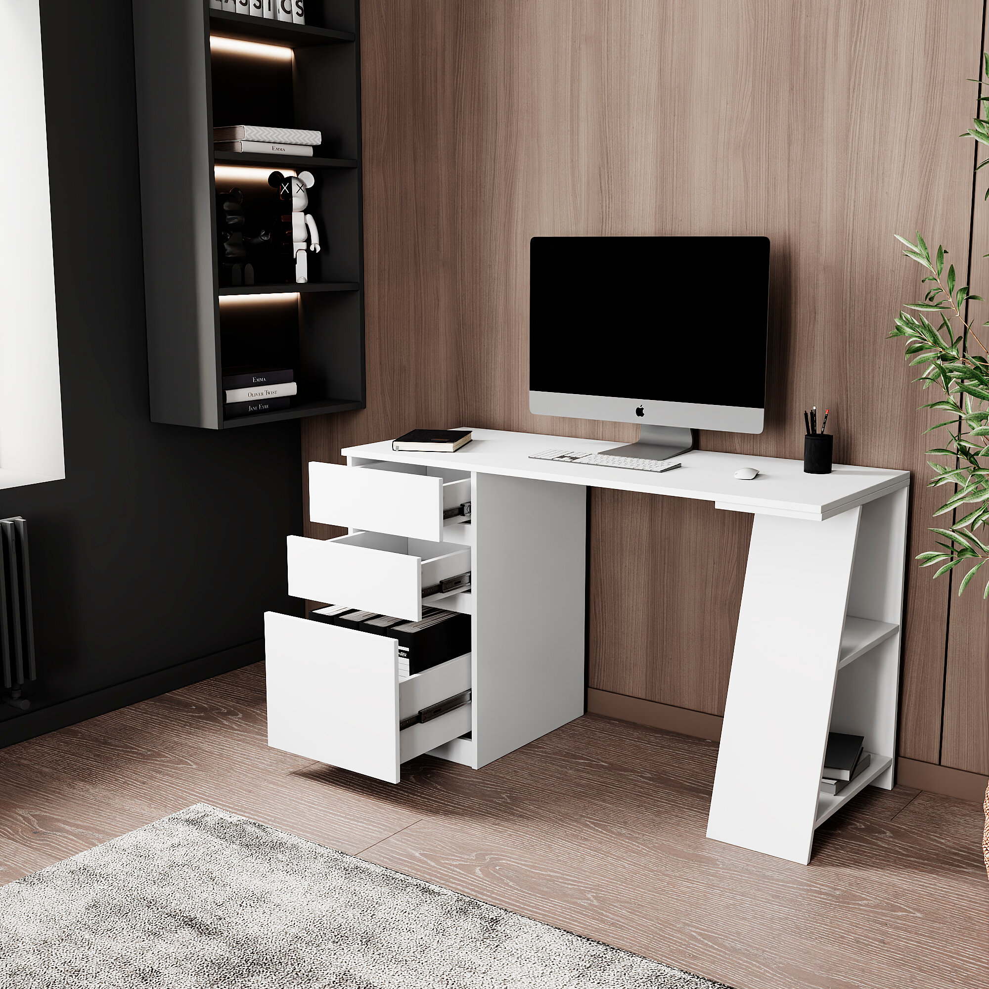 10 цен на Стол Карл письменный компьютерный с ящиками и полками 126х50х74 см белый
