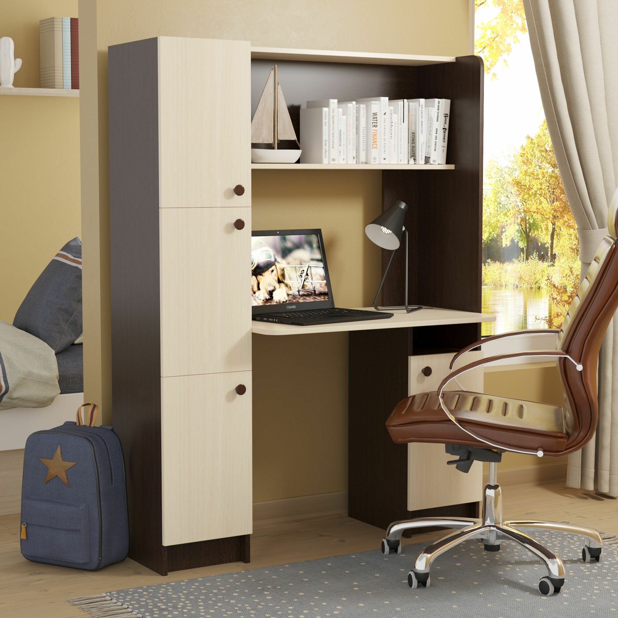 Стол письменный Омега-2 с полками и дверцами от Фант-Мебель, 120х50х161 см, цвет Венге/Млечный дуб информация:
