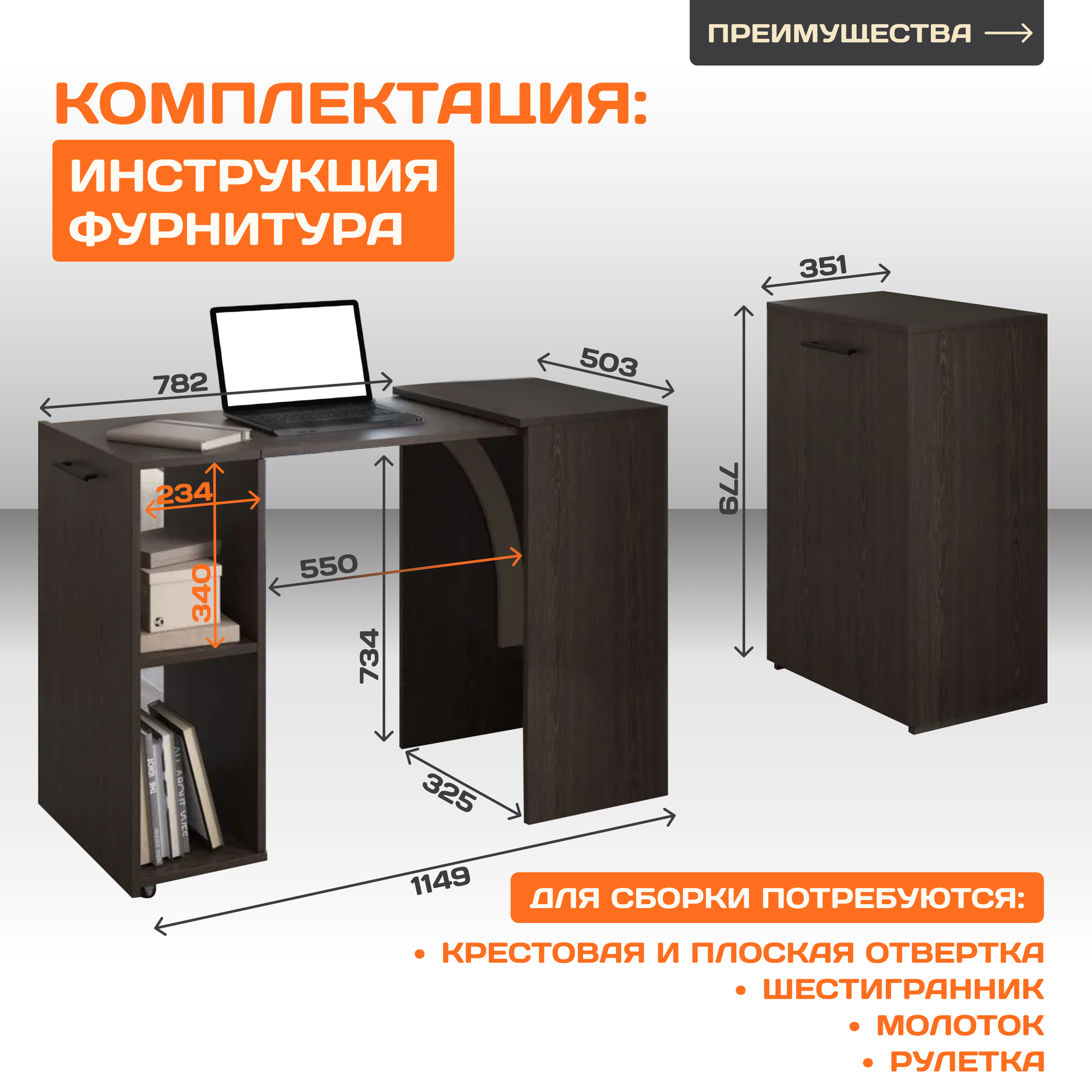 10 цен на Стол тумба раскладной письменный с полками