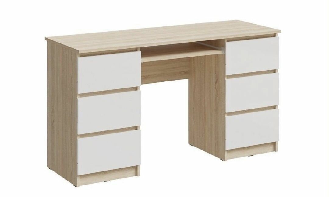 Стол Миф Челси 6 ящиков белый глянец / дуб сонома 138.6x49x76.8 см 6 990 ₽