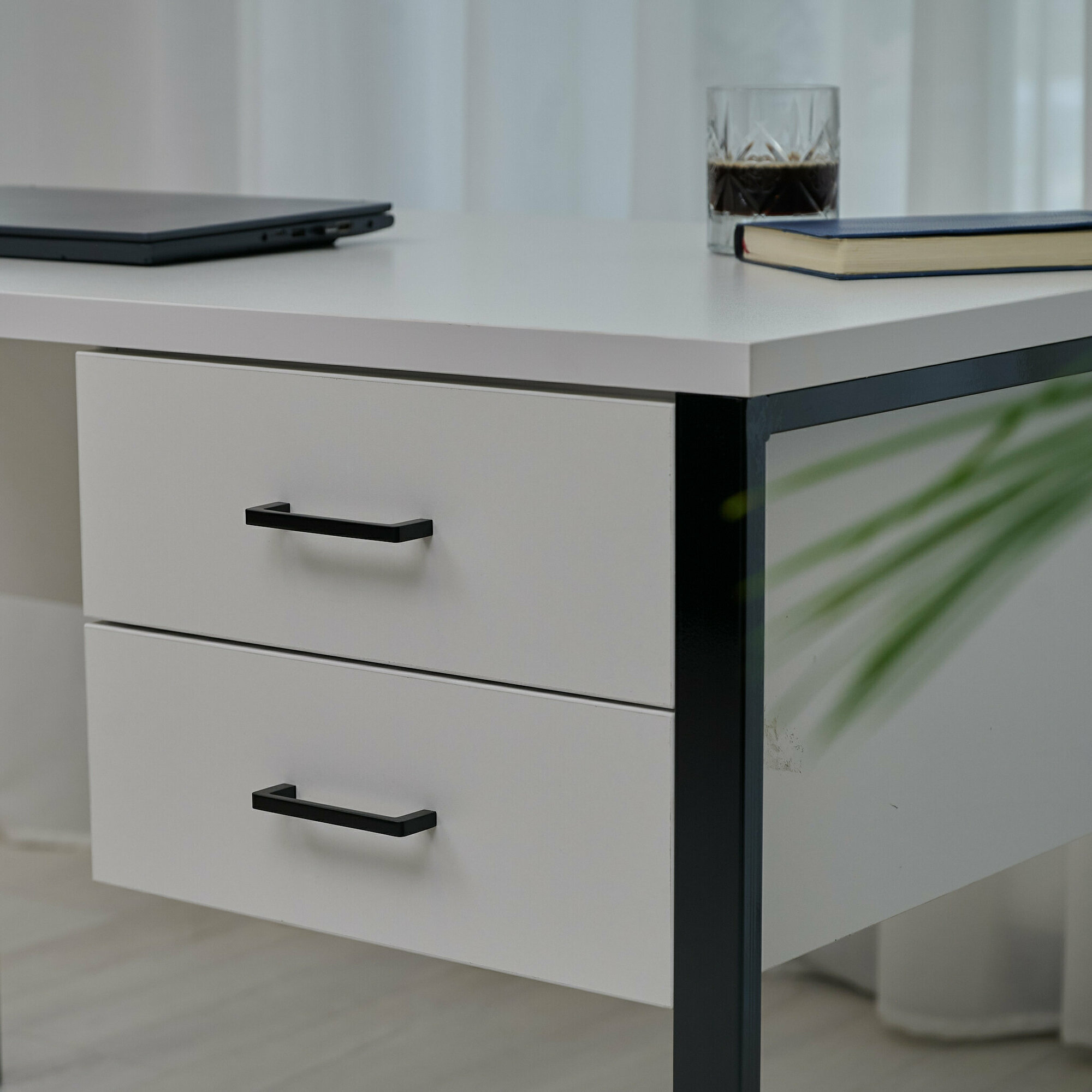 10 цен на Стол письменный с тумбой Лофт "Плутон" 120х60см Белый черные ножки