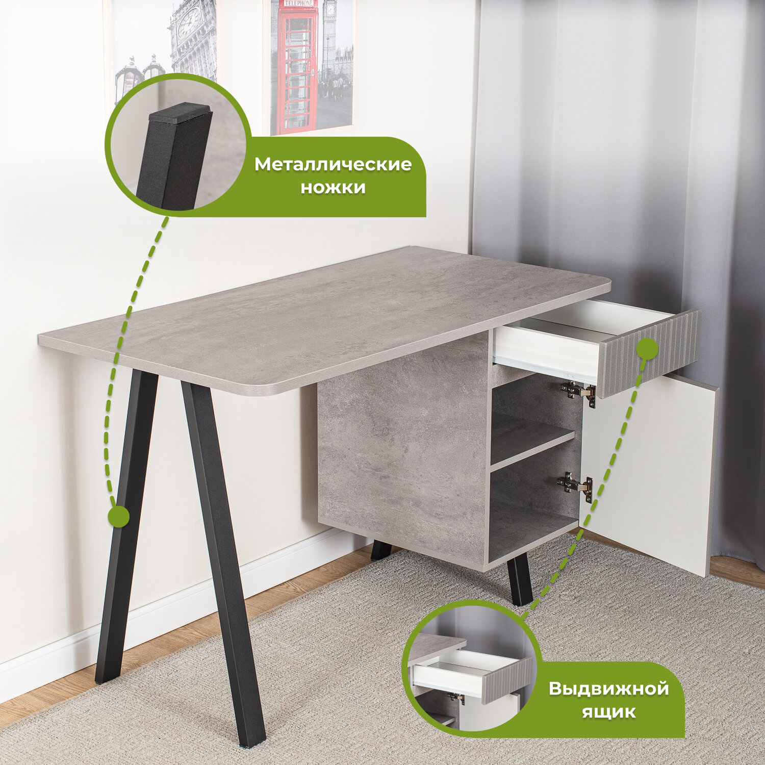 Стол письменный с ящиками Томас 1 СБ 71-С ЧР (120х60х75), рабочий, компьютерный, серый бетон 12 200 ₽