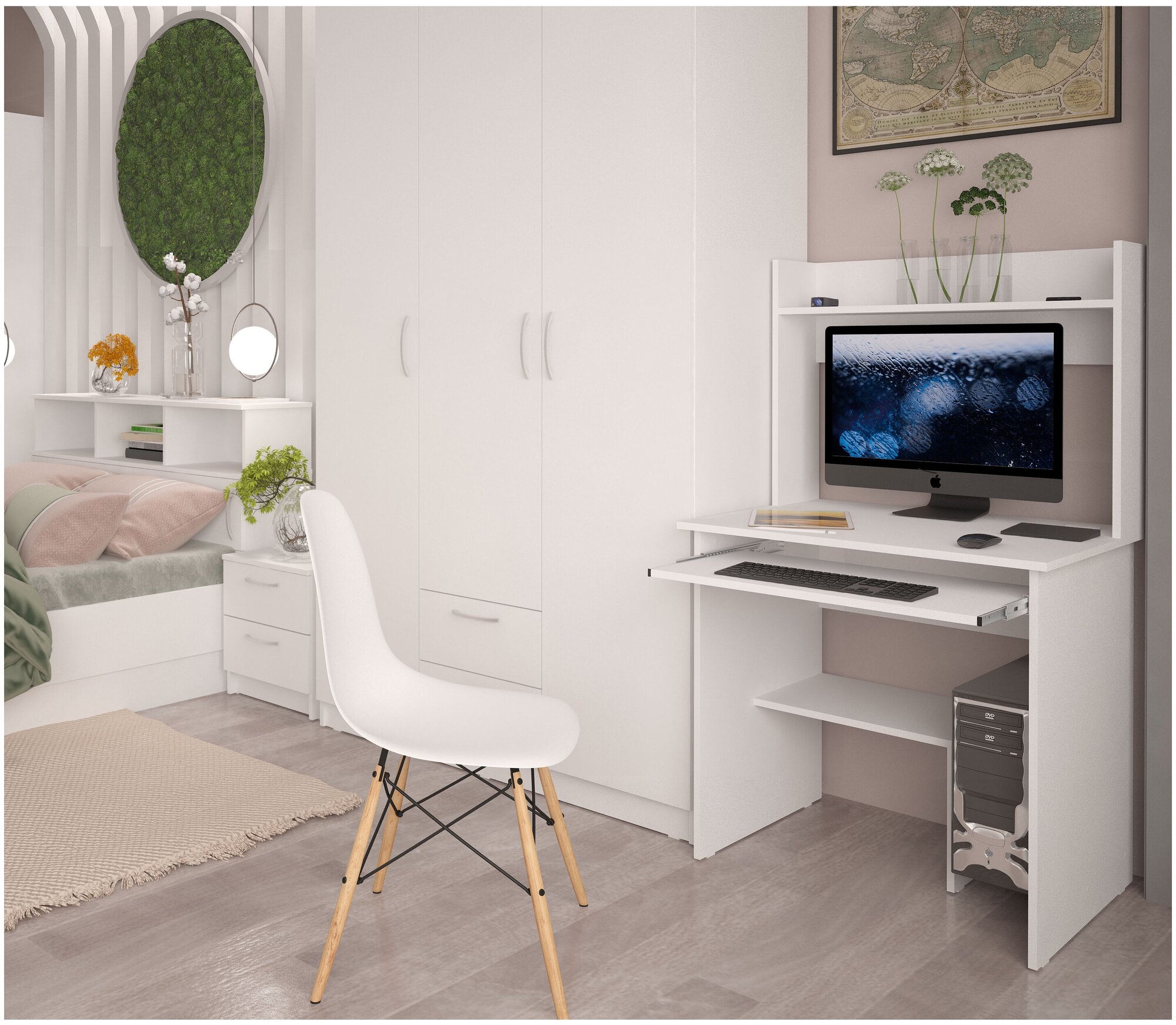 10 цен на Стол компьютерный геймерский игровой письменный с надстройкой полкой под клавиатуру ЛДСП 80х60х135.4см белый