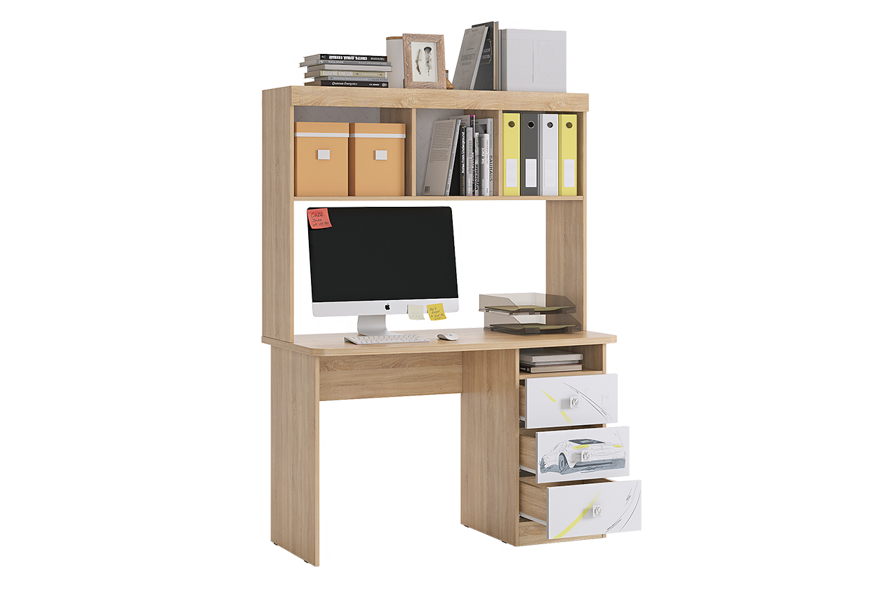 Письменный стол "Форсаж" с надстройкой и ящиками, дуб сонома/белый, 100*60*154 см., Mebelson 11 645 ₽