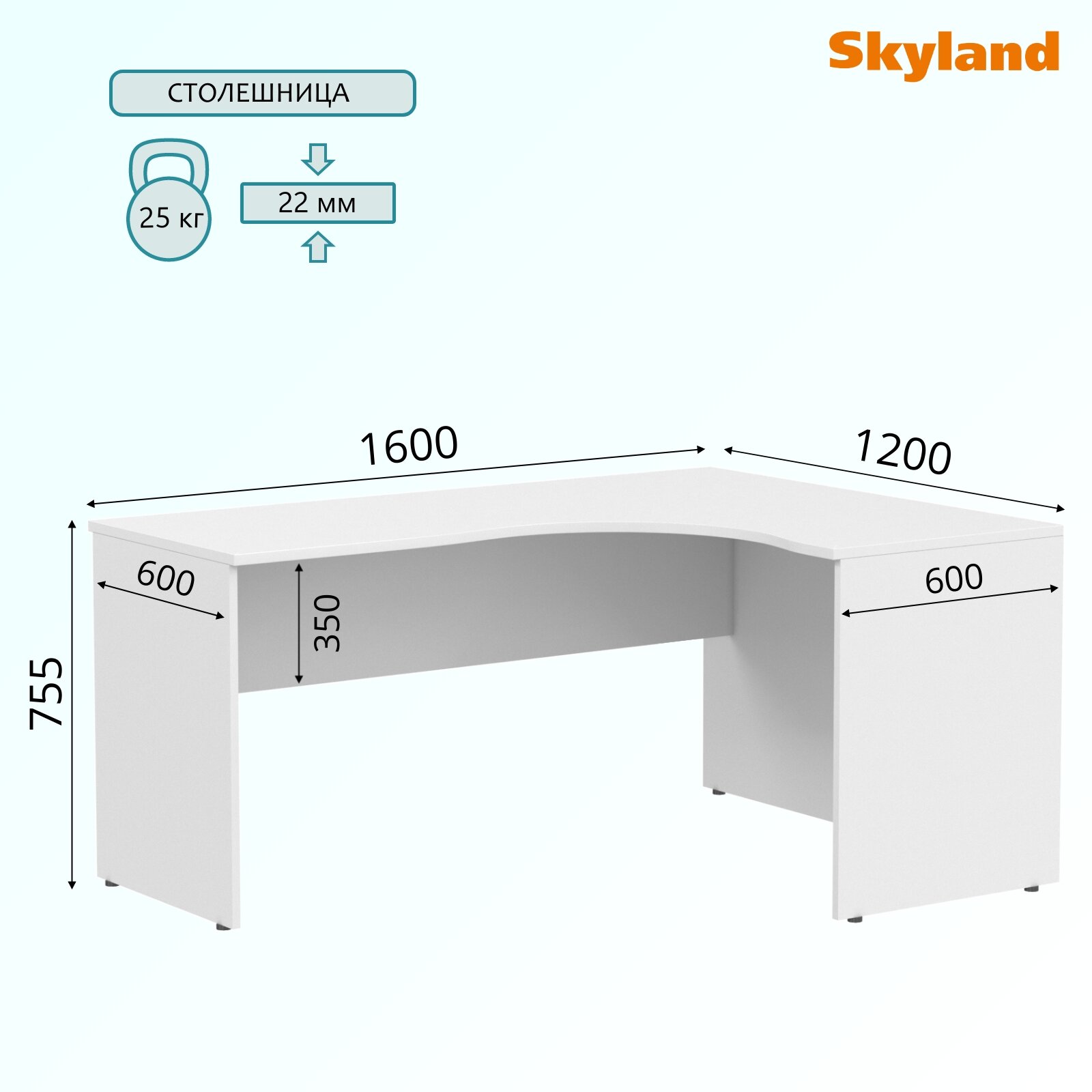 Угловой компьютерный стол SKYLAND IMAGO СА-4 / письменный стол, правый угол, белый, 160х120(60)х75.5 см информация:
