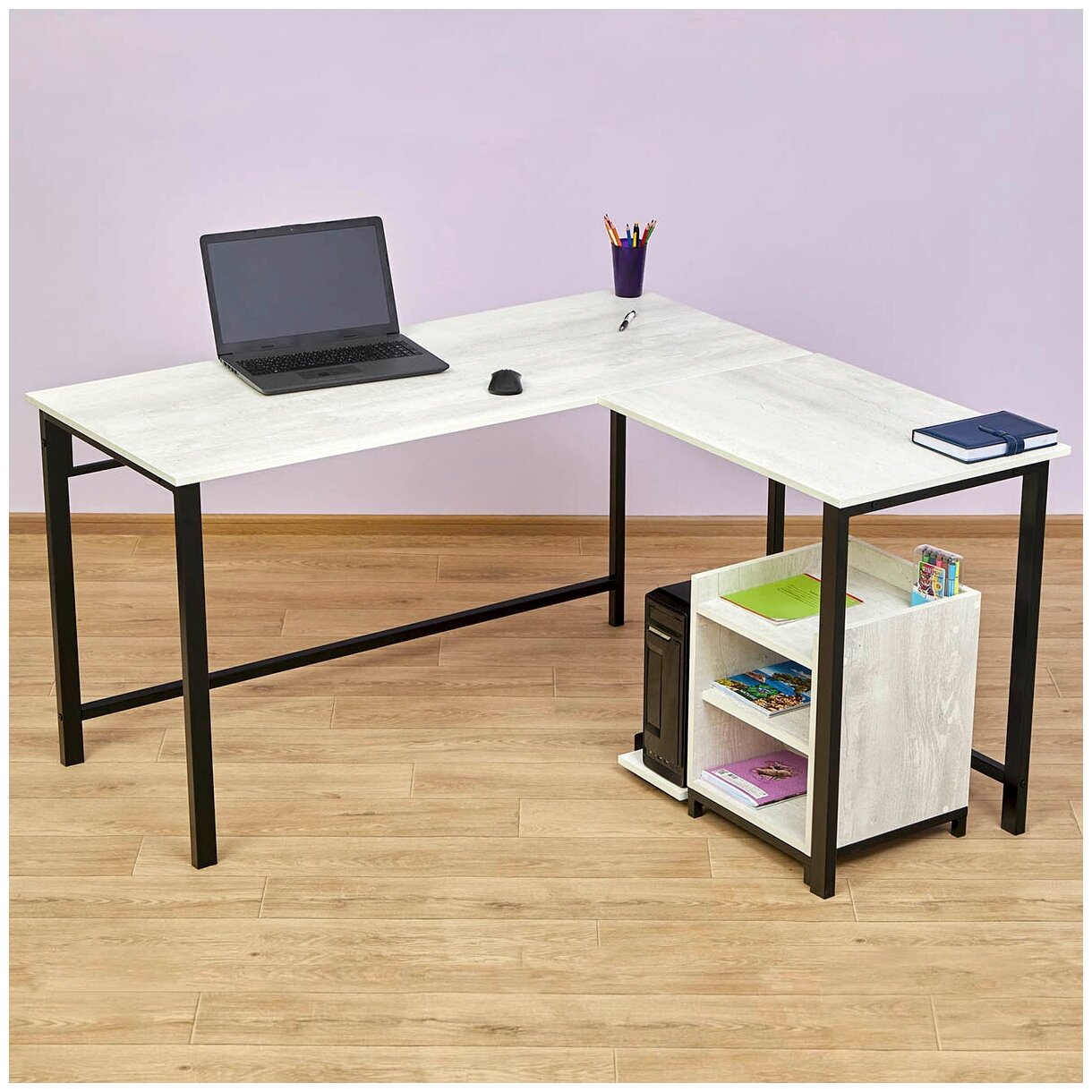 Угловой стол на металлокаркасе Даврит 1СW 156х120 сосна битон белый