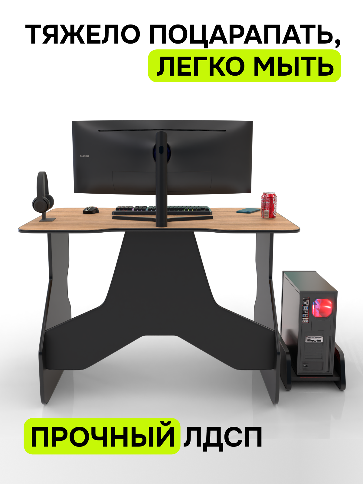 Игровой компьютерный стол для геймера дерево столешница черный кант и черные ноги без полки 106х73х75 информация: