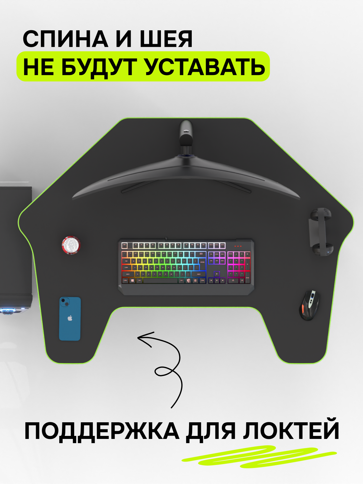 Отзывы на Стол игровой компьютерный для геймера угловой черный с кислотным кантом