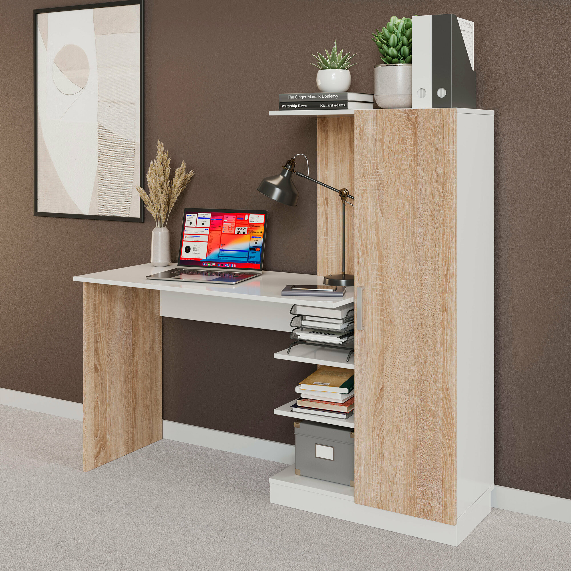 10 цен на Бейсик Стол компьютерный (Дуб Сонома/Белый)