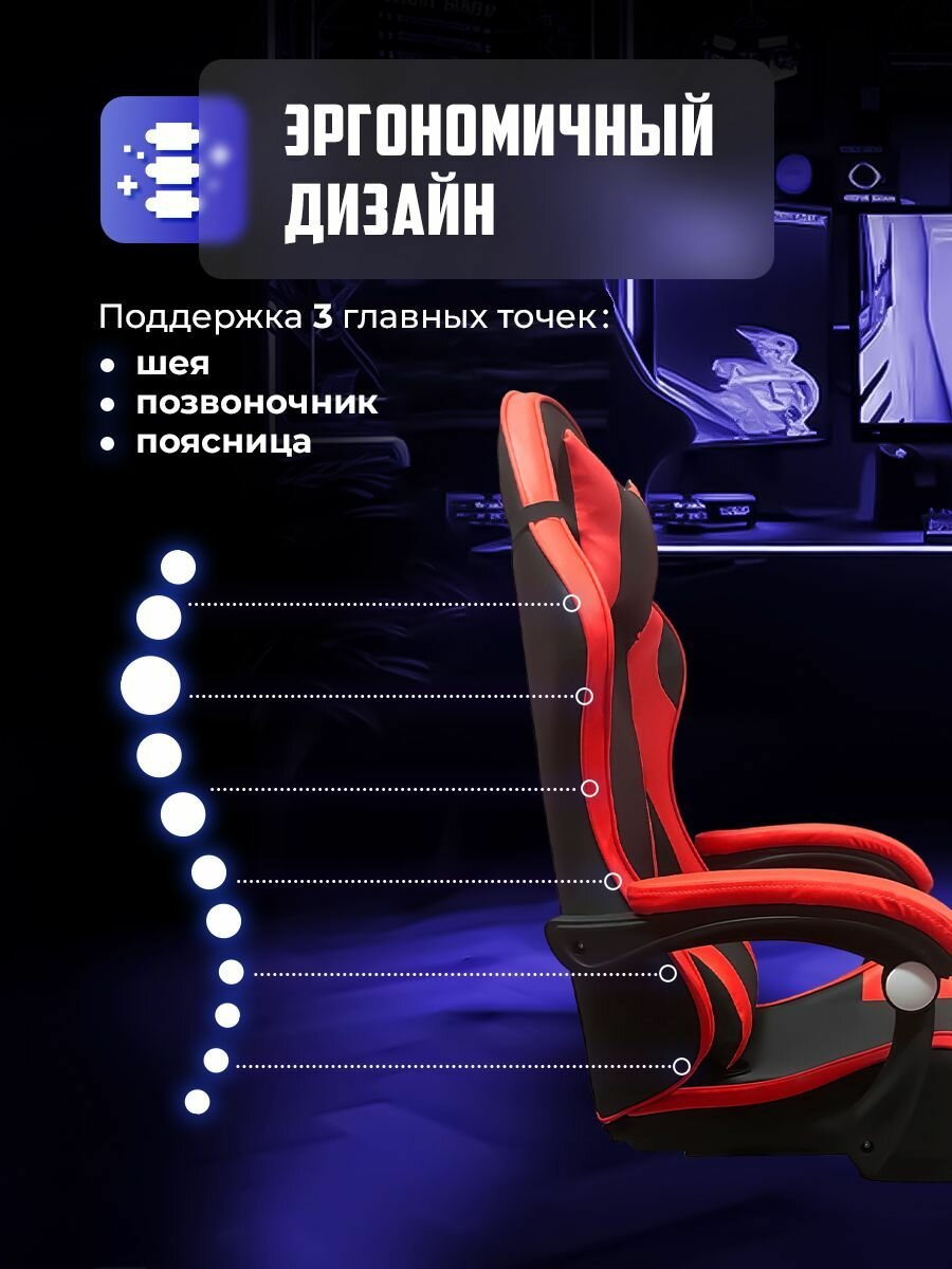 10 цен на Кресло компьютерное игровое геймерское Classmark FT-7009 офисное, с подушками для спины и шеи, на колесиках, черно-красное, экокожа, газлифт