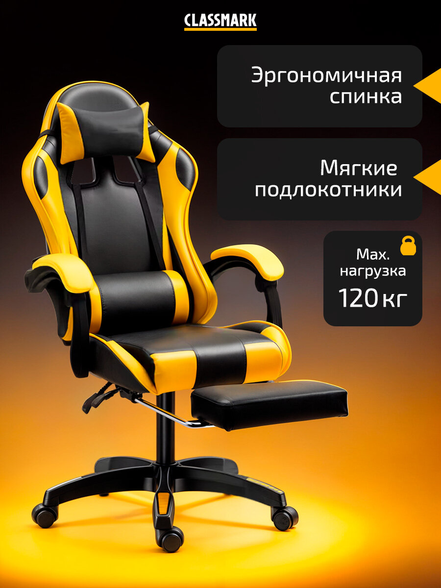 Отзывы на Кресло компьютерное игровое геймерское Classmark FT-7009 офисное, с подушками для спины и шеи, на колесиках, черно-желтое, экокожа, газлифт