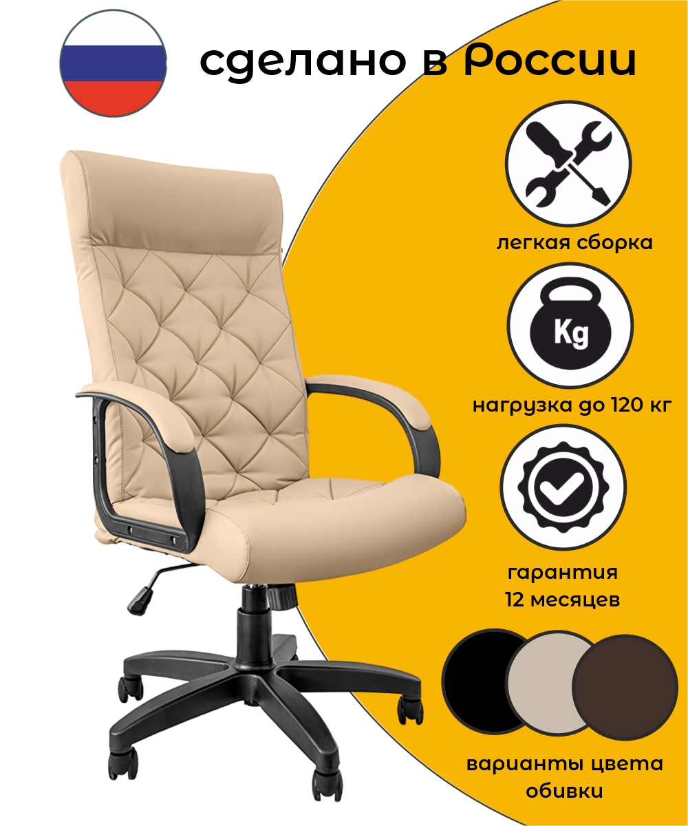 10 цен на Кресло Руководителя Компьютерное для Дома и Офиса KR-5282, Офисное Кресло, Экокожа, слоновая кость