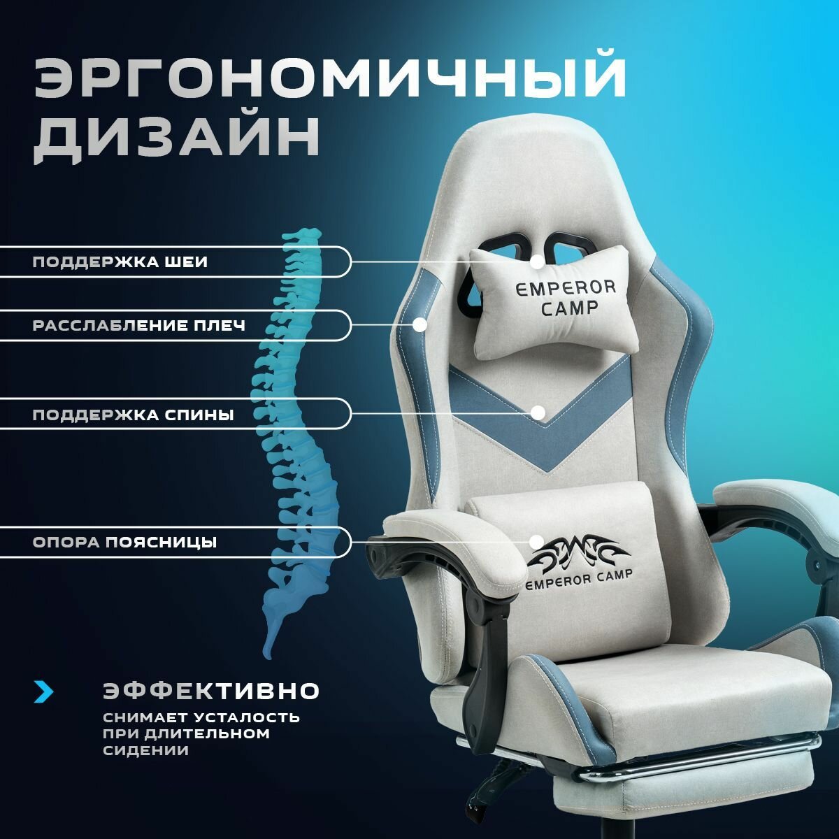 Компьютерное кресло игровое геймерское Emperor Camp на колесах 555 серо-синее с подставкой для ног информация: