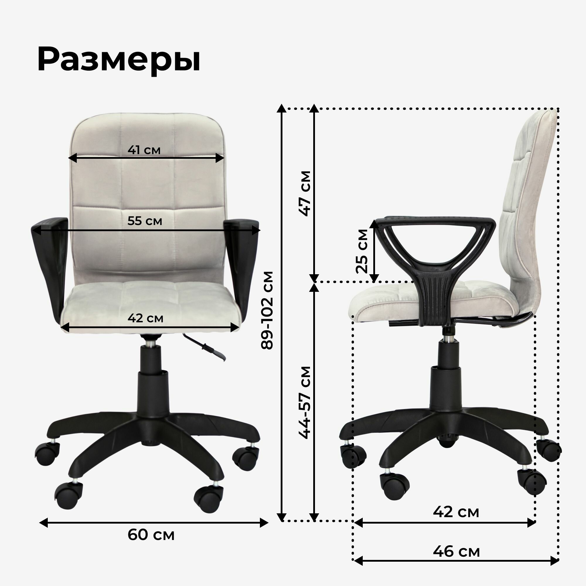| Конструктивные особенности | без подлокотников / с газлифтом / с колесами (роликами) / с подлокотниками |