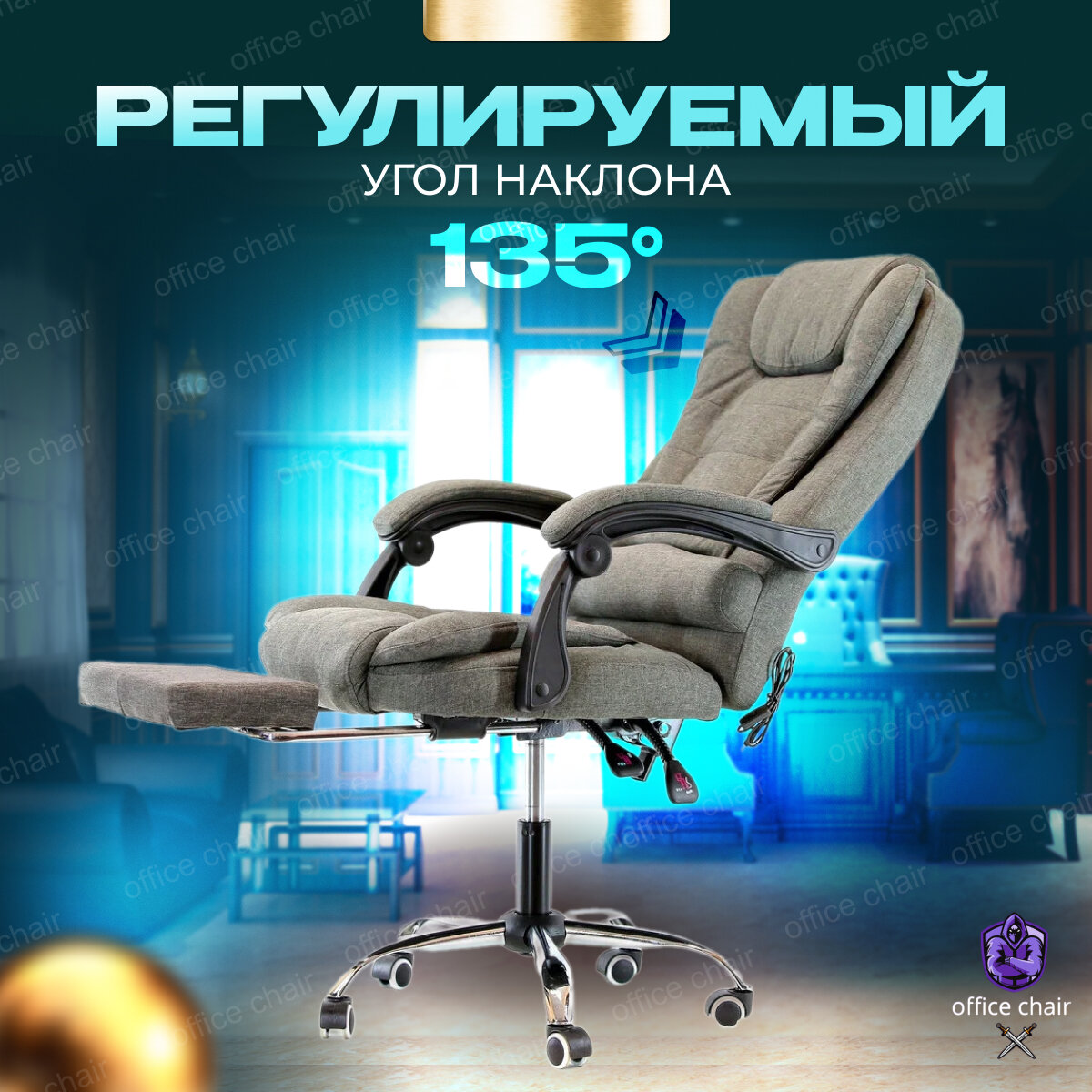 10 цен на Компьютерное кресло тканьевое с вибро-массажем и подножкой