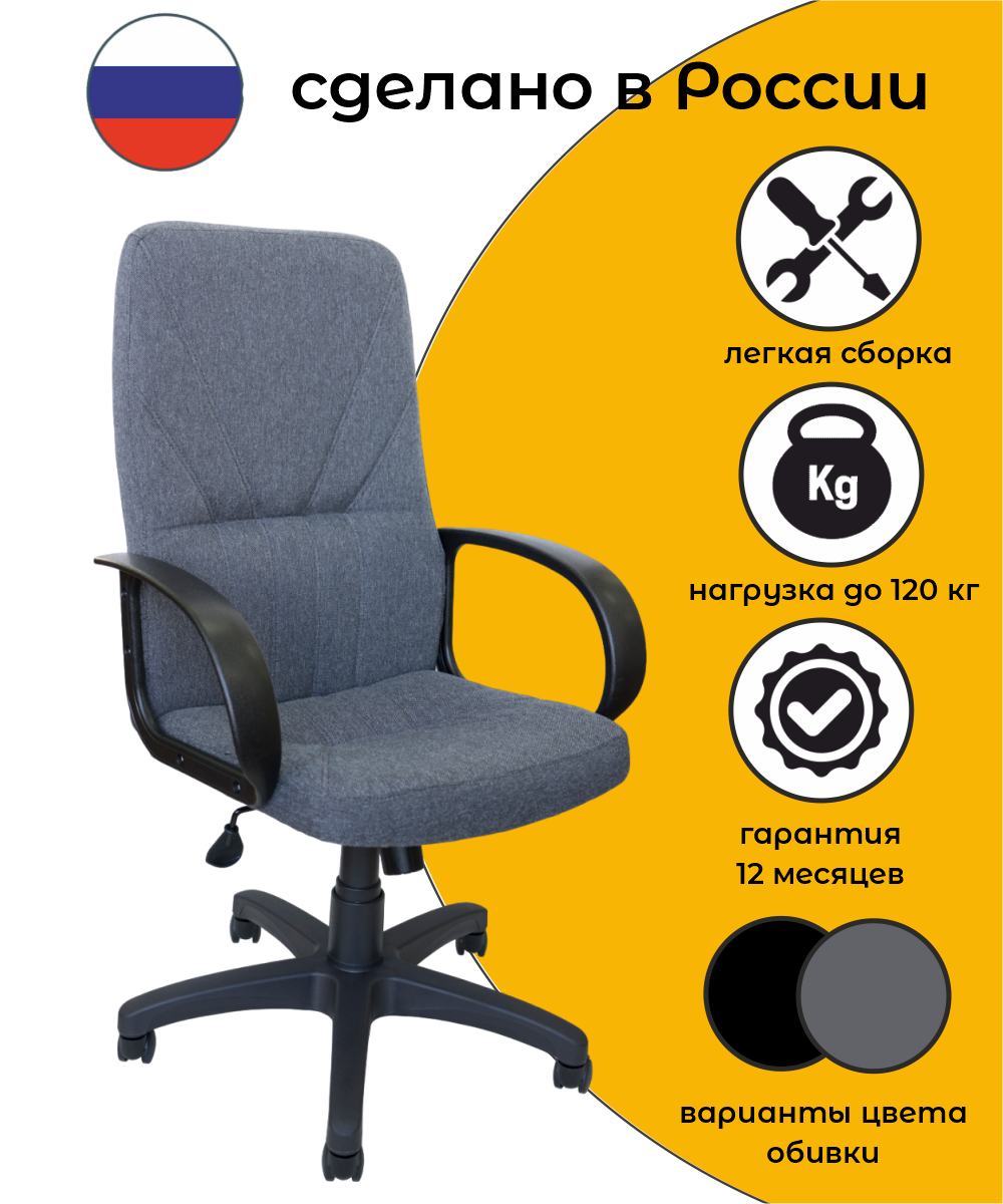 10 цен на Кресло Компьютерное Руководителя для Дома и Офиса KR-5237, Кресло Офисное, Ткань рогожка, Ткань Серая