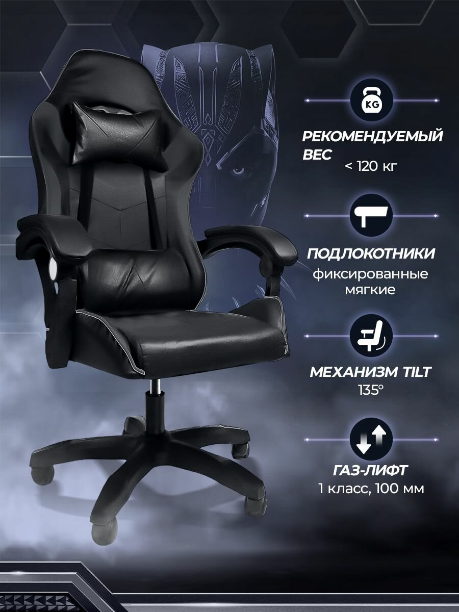 Кресло компьютерное игровое геймерское Classmark FT-088 офисное с подушками для спины и шеи на колесиках, черное, газлифт экокожа информация: