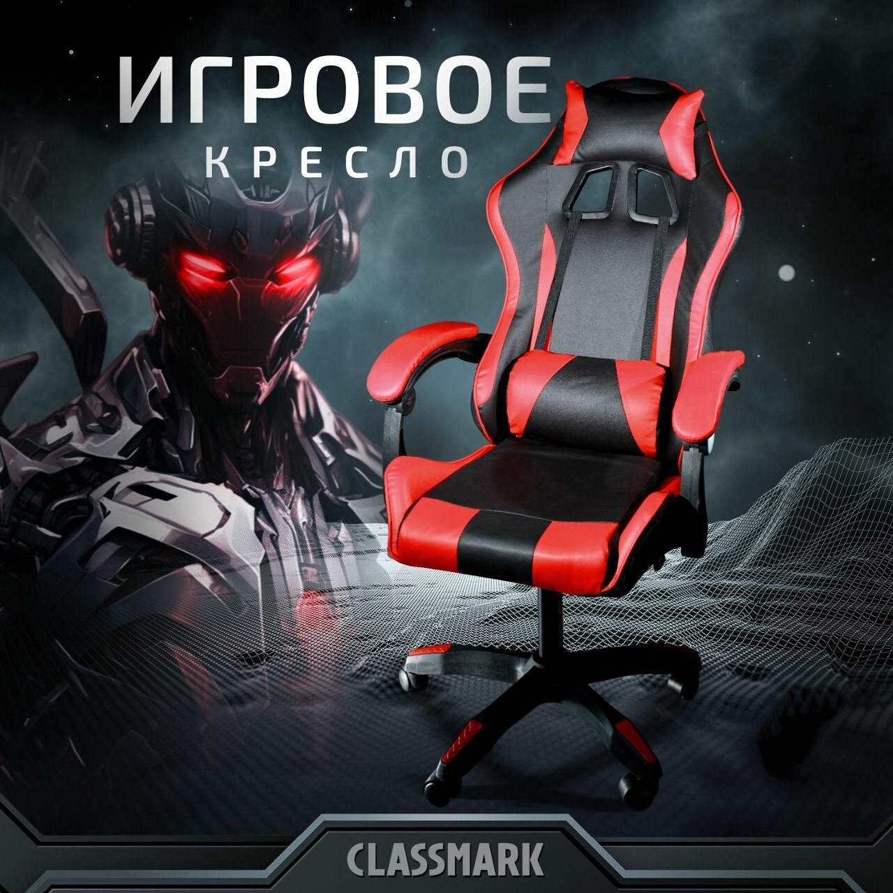 Кресло компьютерное игровое геймерское Classmark FT-055B офисное с подушками для спины и шеи на колесиках, черно-красное, экокожа, газлифт информация:
