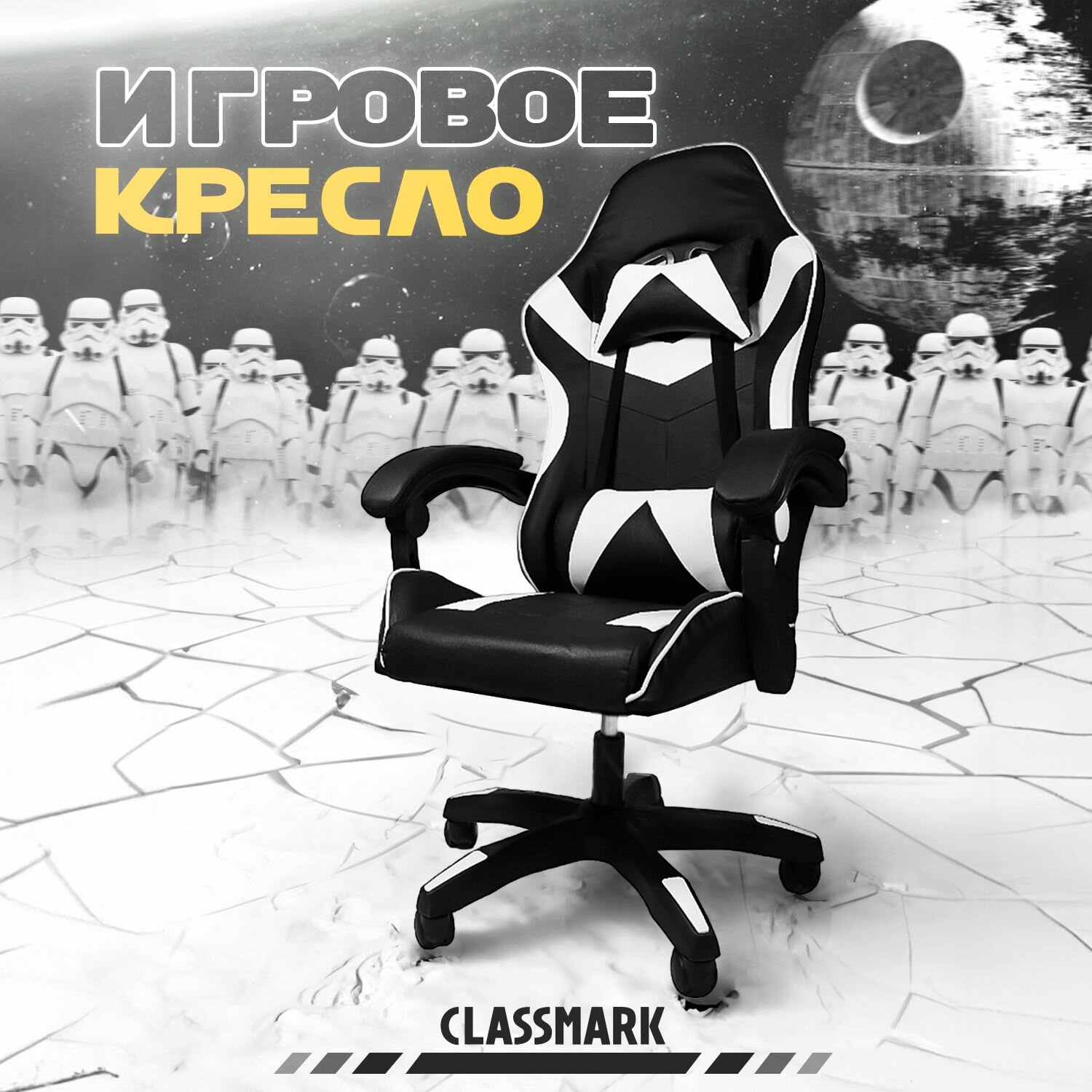 10 цен на Кресло компьютерное игровое геймерское Classmark FT-088 офисное с подушками для спины и шеи на колесиках, черно-белое, газлифт, экокожа